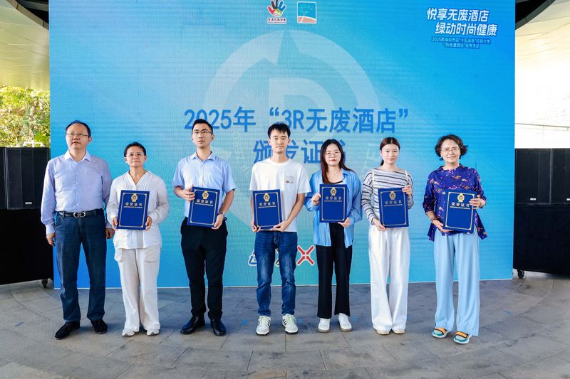 交流会现场,市人大代表肖幼美、市政协委员吴滨、市酒店业商会、市环境卫生协会、市无废城市技术产业协会等行业协会代表为“3R无废酒店”代表颁证,肯定其绿色运营成效;市城市管理和综合执法局等部门代表为11家“十佳优秀示范酒店”授牌,此举旨在认可优秀酒店的垃圾分类、资源节约等无废工作,也为行业树立标杆,激励更多酒店参与打造绿色低碳旅居模式。