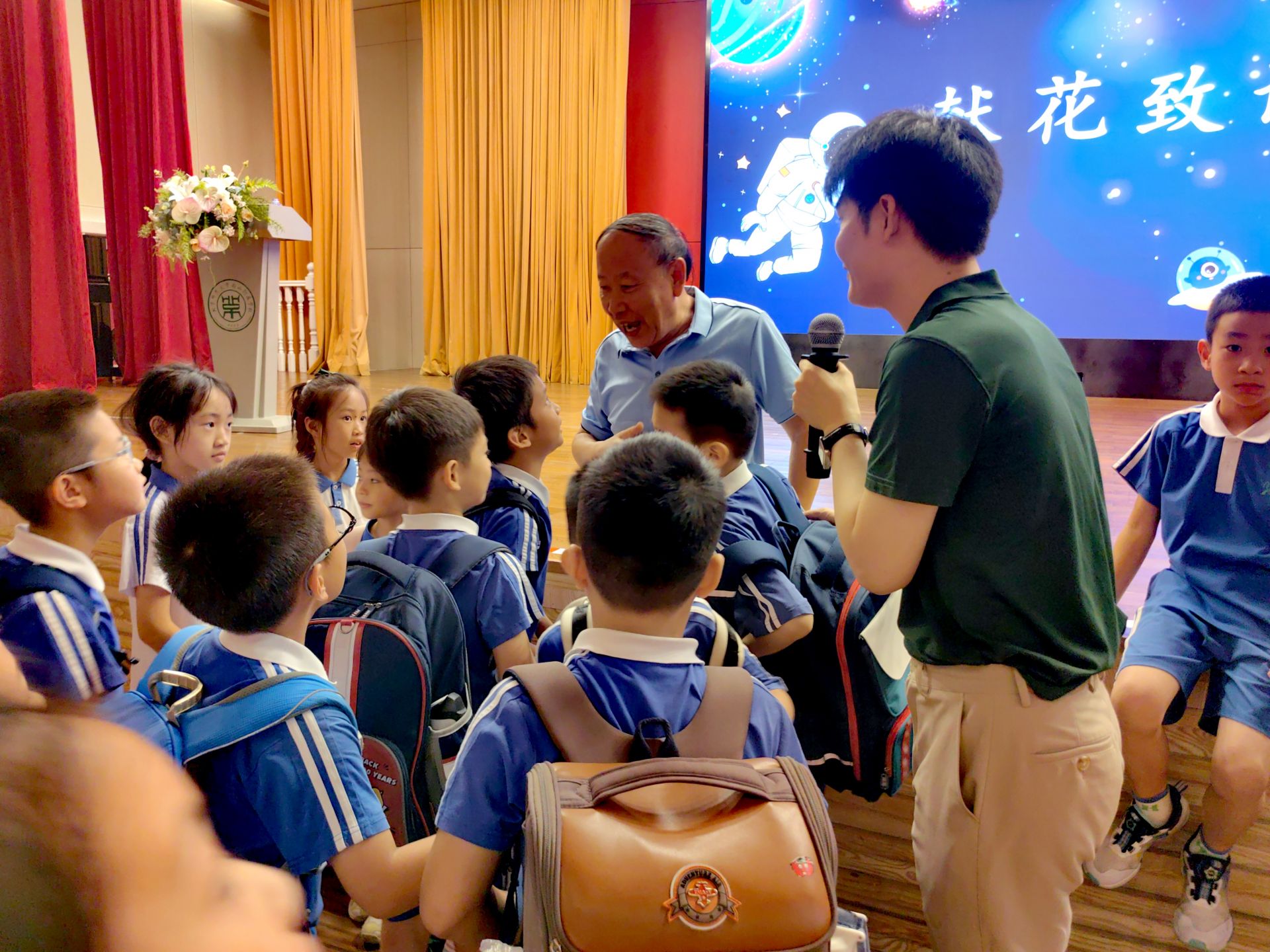 这场讲座犹如一颗播撒在孩子们心田的种子,悄然种下了对天文的梦想。讲座结束后,孩子们依依不舍,纷纷围着刘川浩提问。其中,一位小男生尤为激动,他挤过人群,走到刘老师面前,敬了一个标准的少先队礼,动情地说:“老师,我要向您敬礼。”这一幕感人至深,孩子们对刘老师及天文的喜爱之情溢于言表。