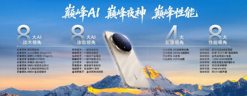 10月15日,全球领先的AI终端生态公司荣耀正式发布了备受期待的年度旗舰新品——荣耀Magic8系列,并发布了自进化AI智能体操作系统——全新 MagicOS 10。依托在AI领域的长期技术积累和对用户需求的敏锐洞察,荣耀Magic8系列通过“8大AI技术领先、8大AI体验领先、4大影像领先、8大性能领先”,以“8848巅峰旗舰”之姿,定义首款自进化AI原生手机,为行业树立开创性标杆。