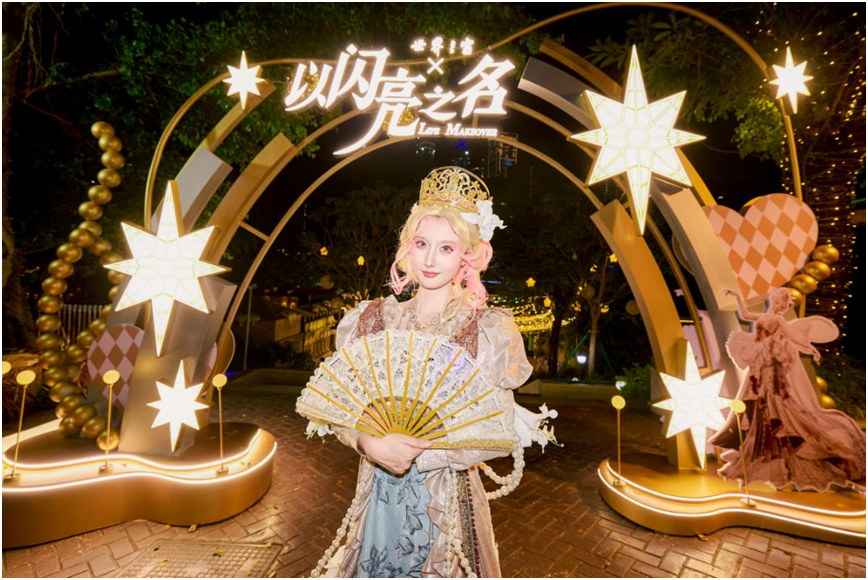 六大美拍勝地成為潮人打卡新地標。從充滿中式浪漫的“尋覓桃花源”,到奇幻的“魔法城堡”;從未來感十足的“星際朋克”,到唯美靜謐的“蝶夢山谷”;從寓意美好的“好柿花園”,到與熱門遊戲《以閃亮之名》IP聯動的“璀璨星河”區域。六大場景如同六個交織的奇幻夢境,在流動的光影與交錯的時空中,輕鬆拍出高質量大片。