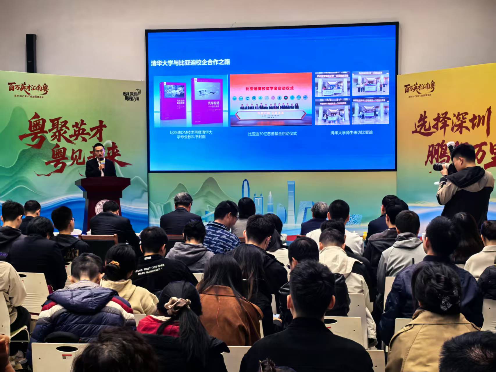 比亚迪集团人力资源处总经理叶子表示,从产业层面看,深圳诸多产业领域、技术走在世界前列,像电子信息、汽车制造、无人机等产业已成为深圳增长主动力和“领头羊”。在人工智能领域,深圳更是一马当先,而且一路领先。“期待大家来到深圳,感受这座城市的创新、包容与活力,更期待加入比亚迪,和我们一起共创全球最前沿的新能源技术。”