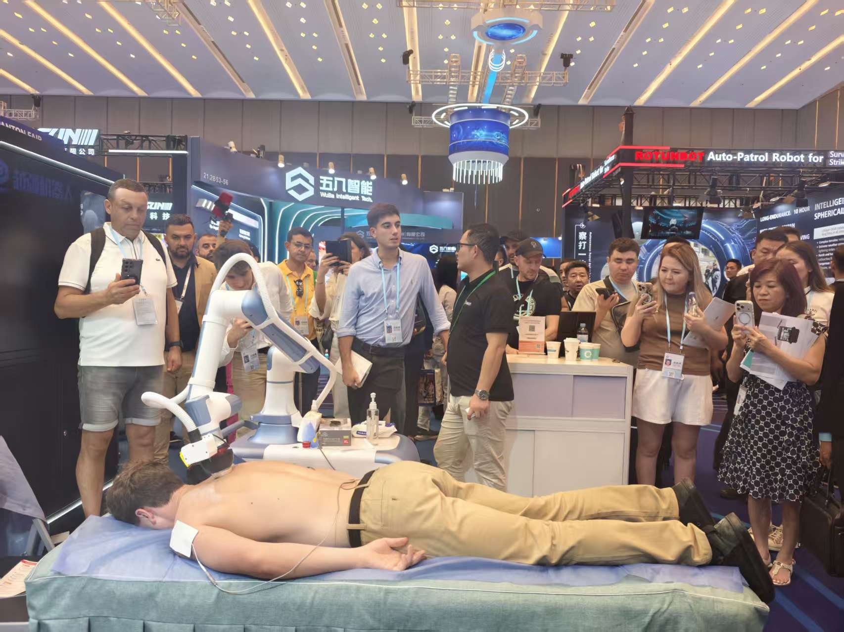 扫码点单到出杯全自动化的咖啡机器人、能自主学习进化的机器人“理疗师”、可复现专家手法的机器人“艾灸师”,深圳越疆机器人展示中国智造重塑的未来生活和生产方式,吸引沉浸式感受和拍照的采购商驻足,展位始终水泄不通。