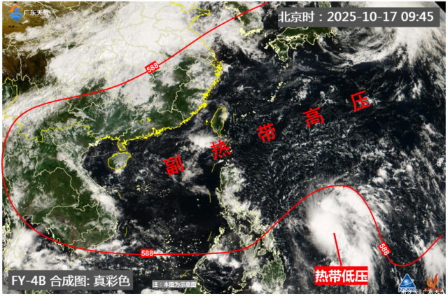 今天(10月17日)08时,位于菲律宾群岛以东的热带扰动已发展为热带低压,11时其中心距离菲律宾马尼拉偏东方向约1090公里,也就是北纬13.6度、东经131.0度,中心附近最大风力7级(15米/秒),中心最低气压1002百帕。