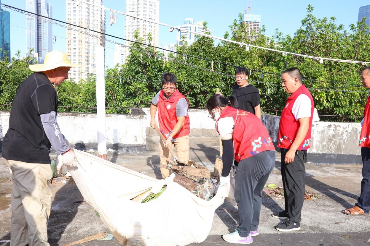 10月17日下午,园岭街道积极动员科室党员干部、社区工作人员、物业管理处、居民志愿者等多方力量,组成清杂整治队伍,分片包干、责任到人,对辖区内老旧小区、天台、绿化带、地下车库、建筑工地等重点区域,开展“翻盆倒罐”行动,全面清理积水容器、废弃杂物,同步推进“四害”孳生地清除与垃圾分类规范,实现“整治一片、提升一片”。当天下午出动超过200人次参与集中整治,累计清理垃圾8吨,清理蚊虫滋生地40余处。
