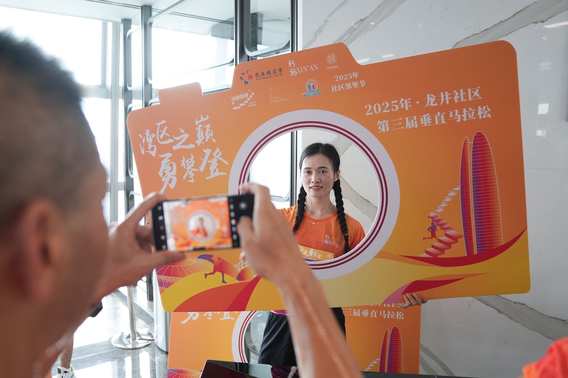 10月17日下午,新安街道龙井社区2025年“湾区之巅勇攀登”登楼赛在230米高的恒明珠国际金融中心鸣枪开跑。150多名运动达人汇聚龙井社区,在宝安的“垂直赛道”上跑出新风采,助力十五运会。