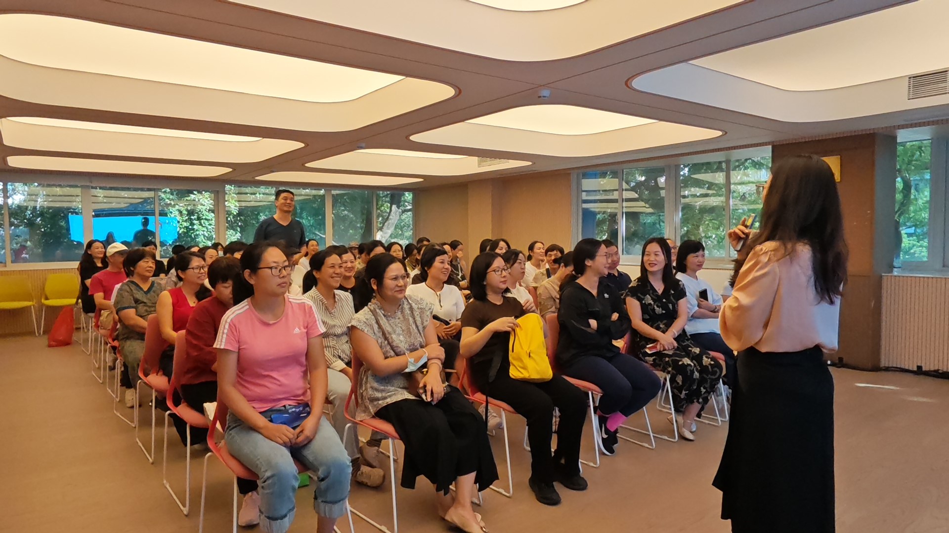 模拟结束后,尹老师引导全场家长换位思考:“如果此刻站在这里的是孩子,每天听到这样的话,他的学习信心会怎样?”现场瞬间安静,不少家长低头沉思,一位爸爸有感而发:“以前没意识到,自己随口说的话对孩子伤害这么大”。