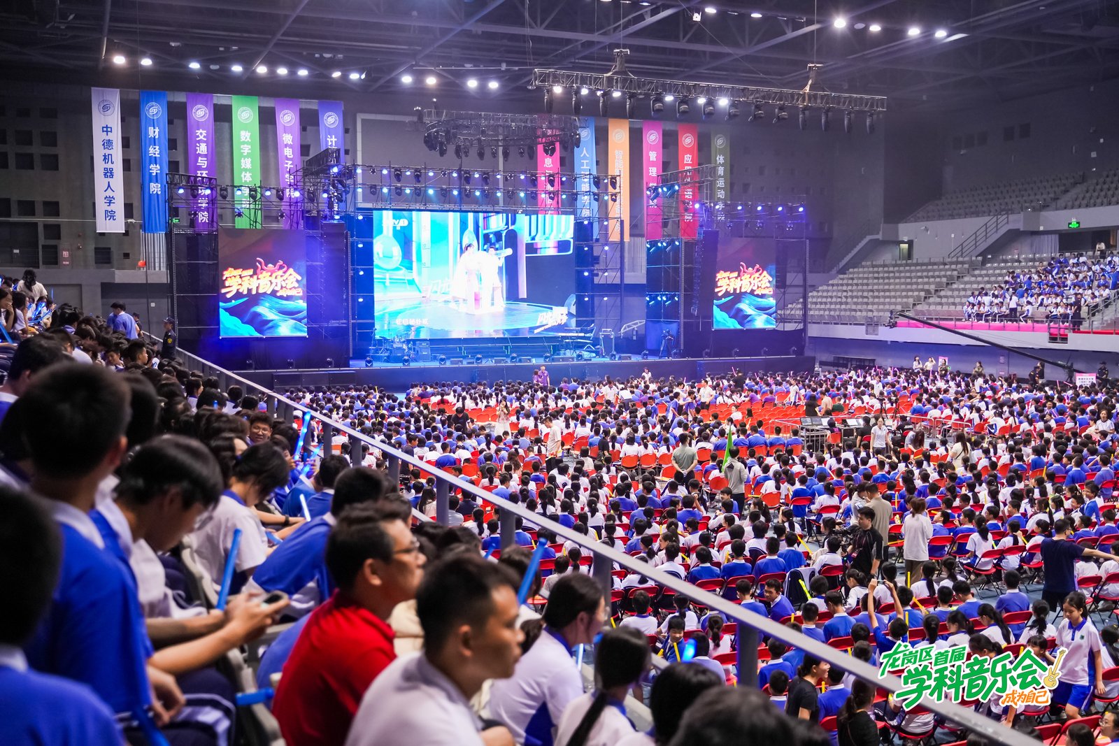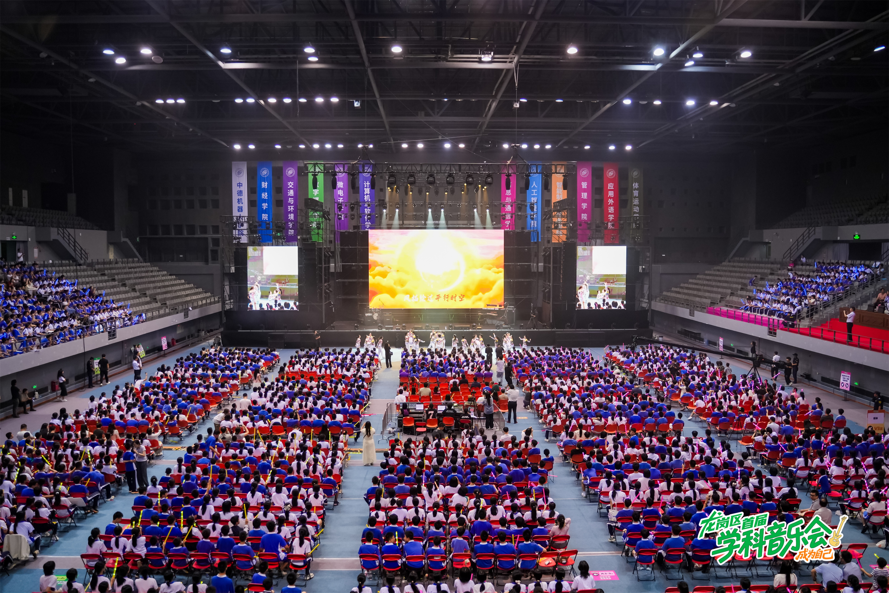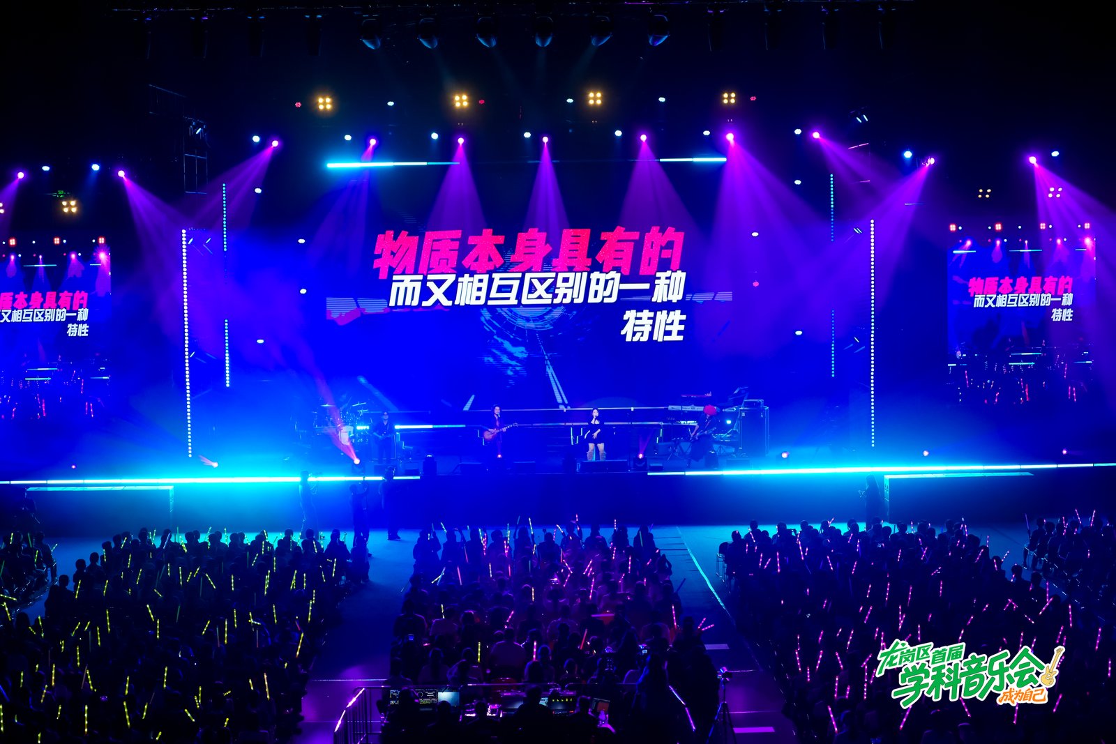 “串联并联不分家,电流电压都听话!”“氧硅铝铁钙钠钾,地壳元素跟我唱!”——这可不是课堂上的背诵口诀,而是舞台上燃炸全场的原创学科歌曲。10月17日晚,龙岗教育首届学科音乐会在深圳信息职业技术大学体育馆震撼上演,一场融合音乐与知识的跨界盛宴,让3000多名学生在旋律中“玩着就把知识学了”。