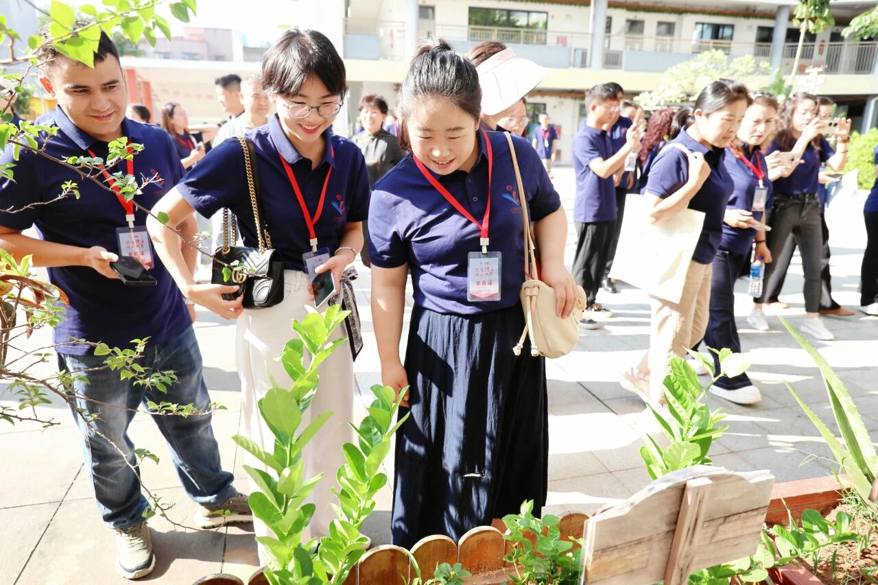 沿着校园路径,交流团队走进一楼区域。好习惯浮雕镌刻成长理念,教师风采墙彰显教师专业活力;各班土培种植基地里,绿意盎然的作物是学生劳动实践的成果,尽显生机。在“成长之路”展示区,学生在各类活动中展现的多元能力,让访客们频频驻足,真切感受成长的力量。