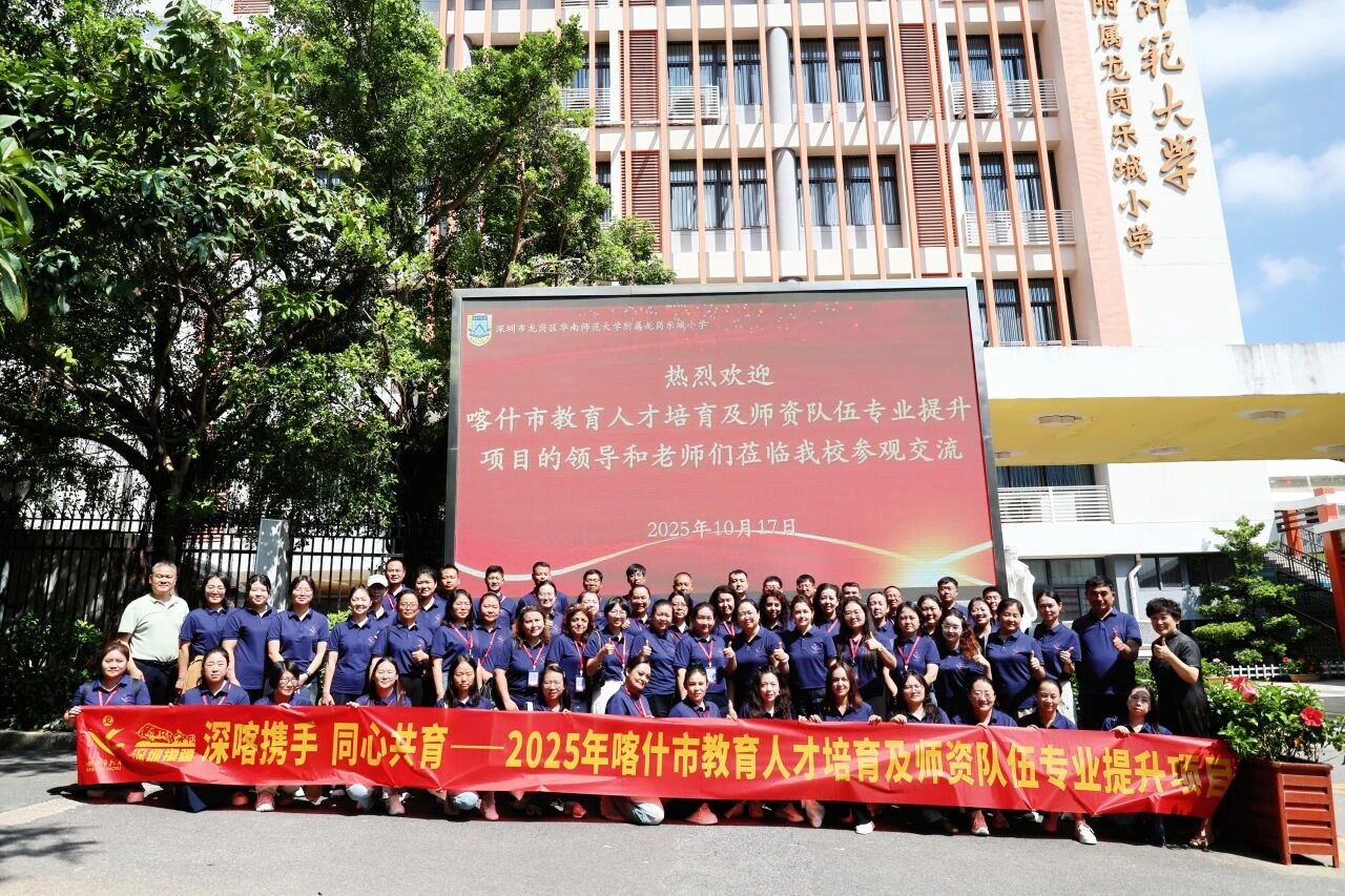 10月17日,阳光和煦,微风宜人。华南师范大学附属龙岗乐城小学(以下简称“华附乐小”)校园内暖意融融,热情迎接喀什市教育局领导及教师团队到访,以“乐文化”为纽带,开启一场聚焦教育实践与学生成长的深度交流活动。