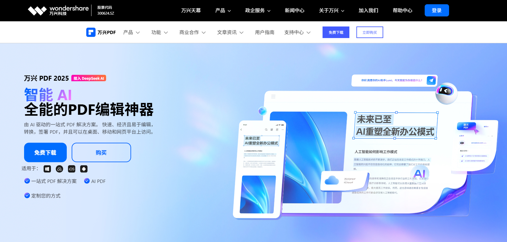近日,AIGC软件A股上市公司万兴科技加速推动产品AI创新落地,旗下文档创意产品万兴PDF/Wondershare PDFelement 焕新发布V12版本。据悉,本次升级以人工智能技术为核心驱动力,全新集成智能加密、专业翻译、管理控制台等突破性AI功能及批量处理能力,致力于为用户提供更智能、安全、高效的文档处理体验,标志着万兴科技在智能文档处理领域迈出坚实一步。