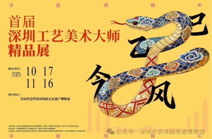 2025年10月17日上午,“乙巳今风,非遗续锦年——首届深圳工艺美术大师精品展”在位于龙岗区平湖街道的深圳百师园启幕,展览持续至11月17日。