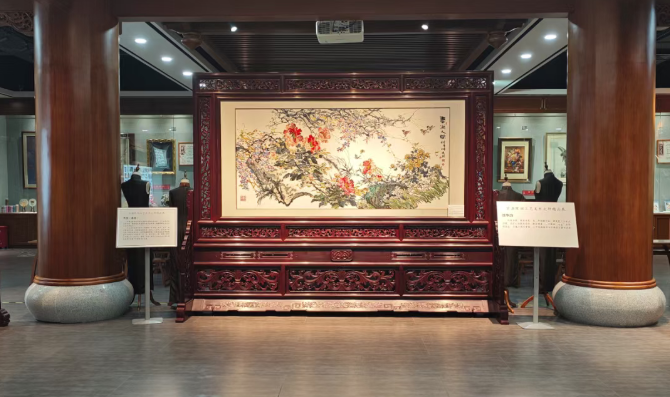 展览精心规划“绣华韵”“雕乾坤”“塑流光”“艺生香”“纸承风”五大主题展区,各展区聚焦不同工艺门类,布局分类清晰、特色鲜明:“绣华韵”专区集中呈现珠绣等刺绣技艺的细腻雅致;“雕乾坤”专区汇聚木雕、玉雕、石雕、金属錾刻等雕刻精品,尽显匠心巧思;“塑流光”专区以陶塑与彩瓷作品为主,传递造型艺术的灵动韵味;“艺生香”专区展示大漆古琴、端砚、书法、国画等文人雅作,承载文人美学;“纸承风” 专区则聚焦剪纸艺术,演绎民间工艺的鲜活生命力。