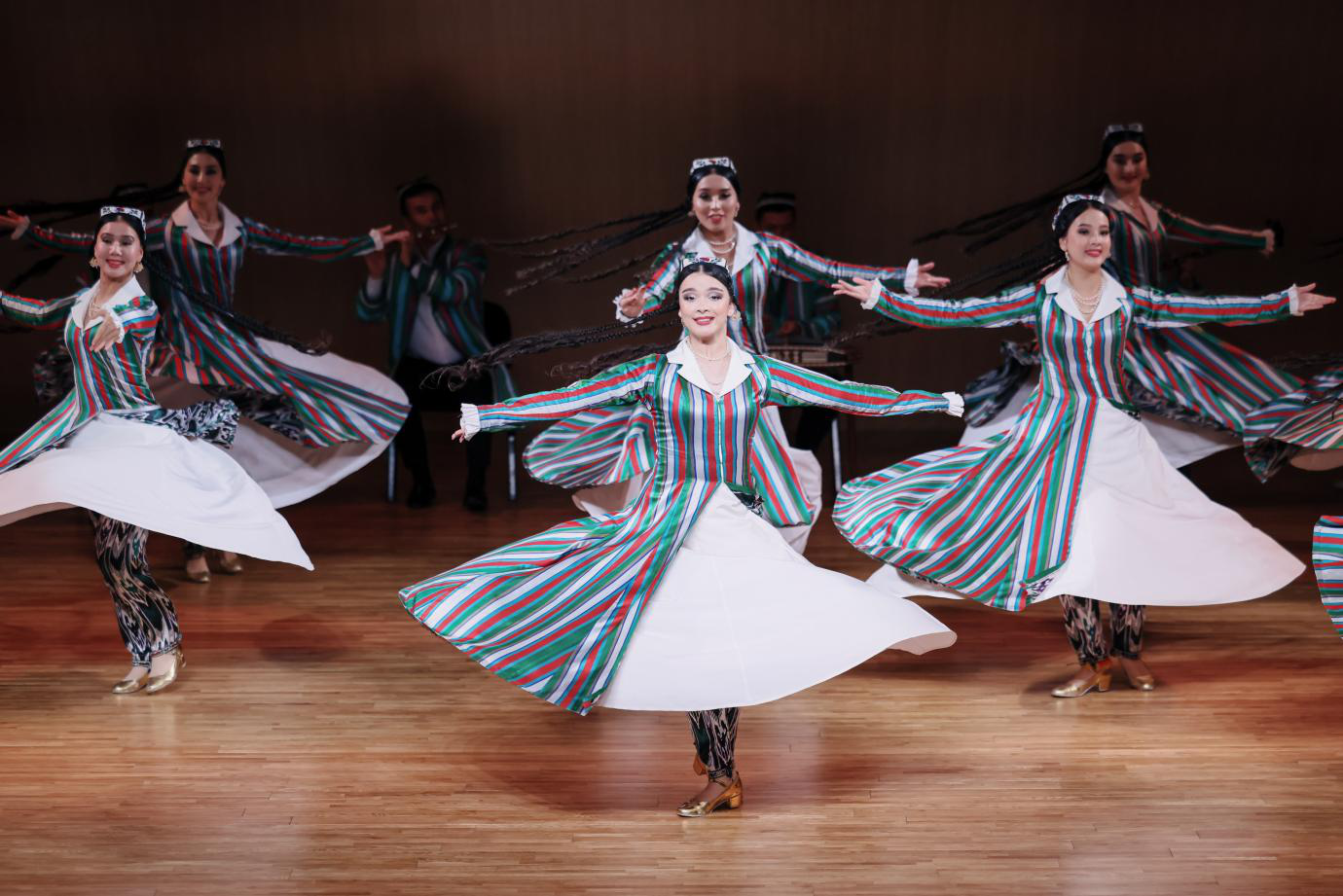 演出中段,《拉兹吉》延续传统音乐的韵味,尽显民族艺术的典雅。《沙博达拉尔》与《安集延舞》则展现多元创作视角,前者载歌载舞,演绎出细腻的情感流动;后者聚焦安集延地区的独特风情,舞姿间满是地域文化的鲜活气息。《多伊拉之声》更是以乐手古利亚姆容·穆罕默德扎诺夫的精湛演奏为核心,将多伊拉乐器的灵动韵律与舞蹈完美融合,成为整场演出的一大亮点。演出后半程,《集成曲》打破地域界限,由穆罕默德容·沙基洛夫编配世界各民族音乐,以多元曲风碰撞出别样艺术火花;压轴之作《我的乌兹别克》在致敬传统的同时注入当代审美,用舞蹈诉说对故土的深情,为整场演出画上圆满且厚重的句号。