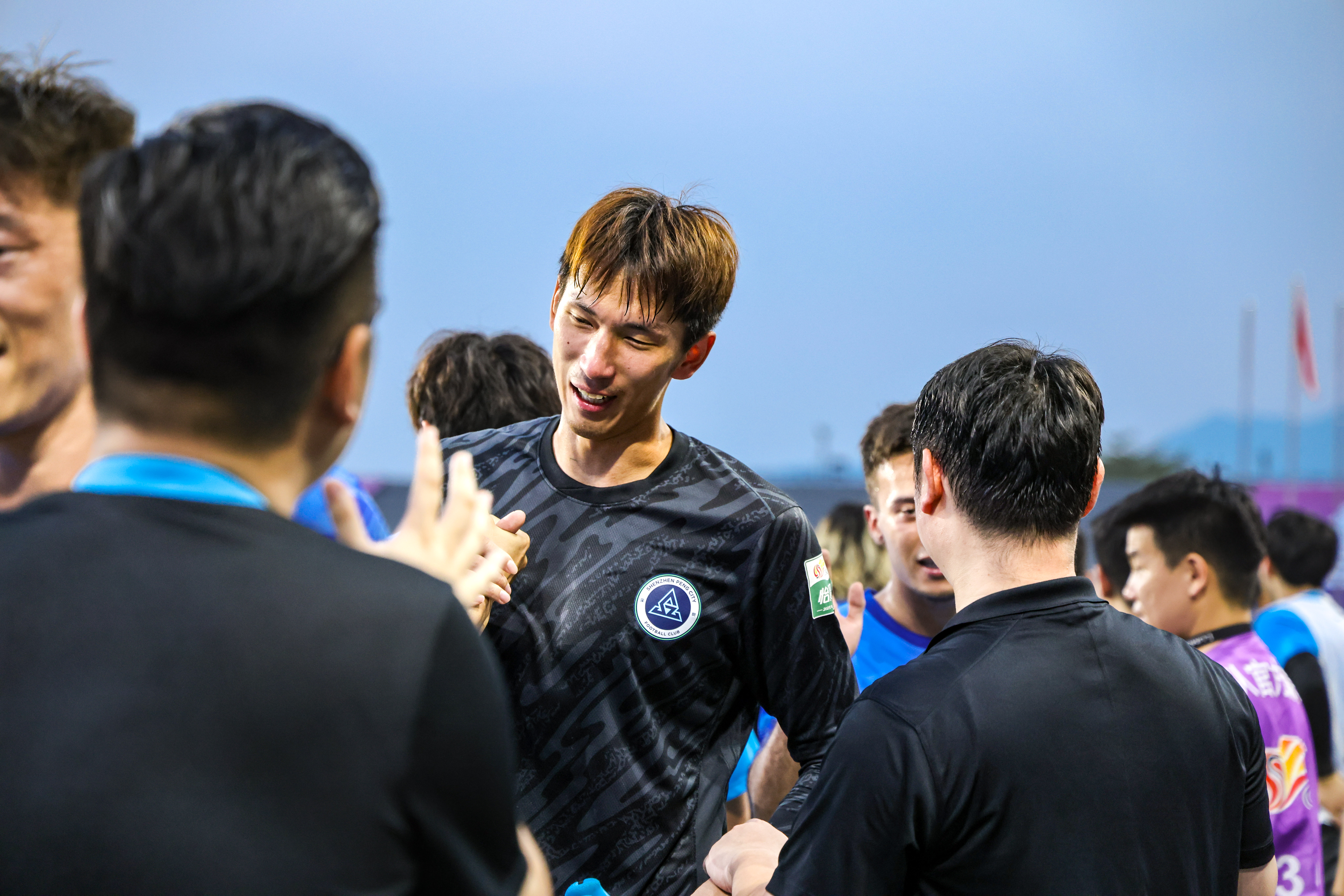 这场胜利让深圳新鹏城队员如释重负,赛后久违地与球迷一起唱一起跳。王峤在庆祝时还模仿杜加利奇的中文,唱“深圳加油”,逗得球迷和队友哈哈一笑。