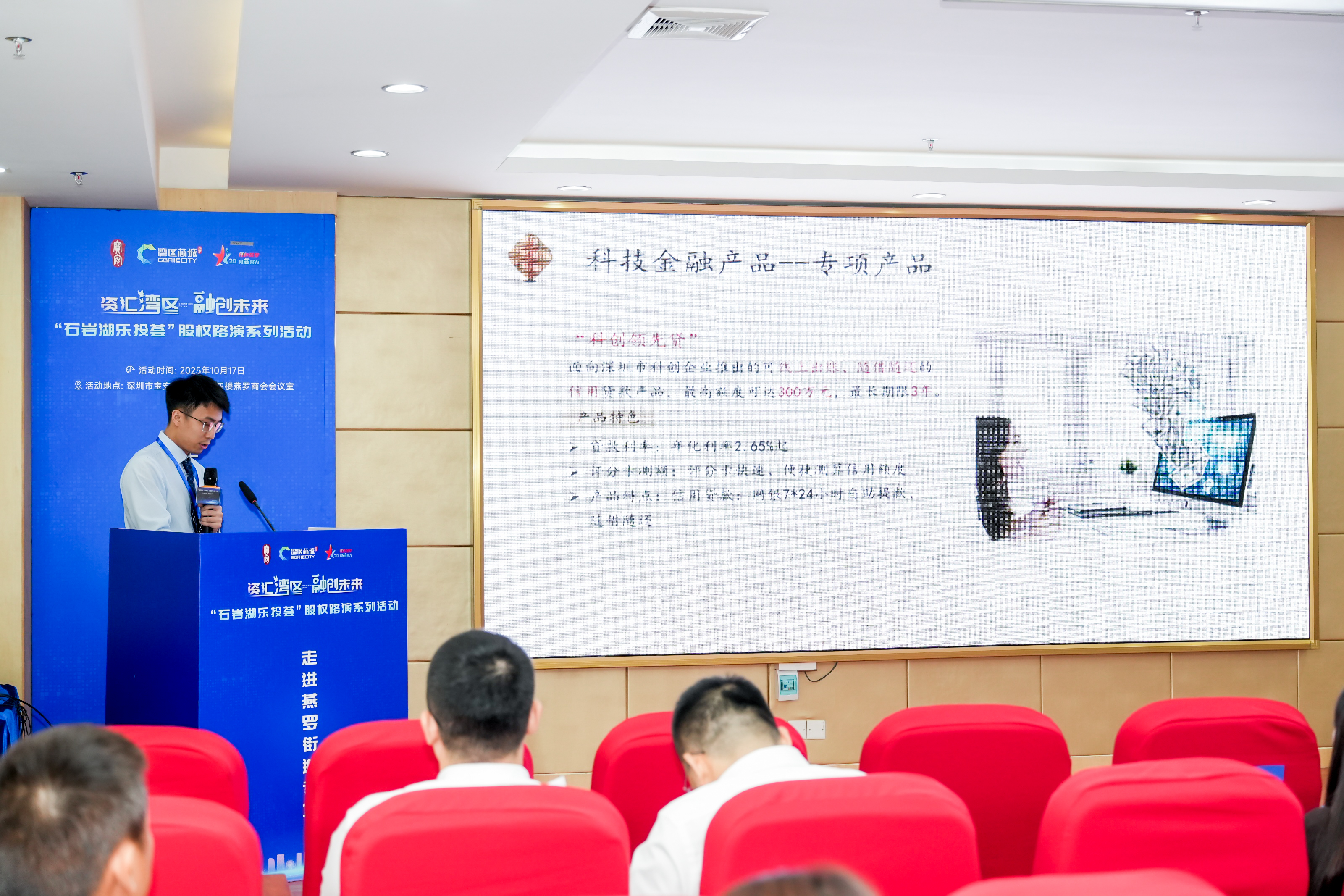 为充分发挥宝安-前海“双区叠加”金融资源优势,构建“产业+资本”深度链接平台,精准破解科技型中小企业融资难题,10月17日下午,“石岩湖乐投荟”股权路演系列活动暨宝企金服系列活动之走进燕罗街道专场成功举办。据悉,此次活动以 “资汇湾区,融创未来”为主题,通过政银战略签约、“四上”企业授牌、金融产品宣讲及硬核科技成果路演等多元环节,全力推动资本力量下沉街区,为燕罗街道打造“湾区芯城”注入澎湃动能。