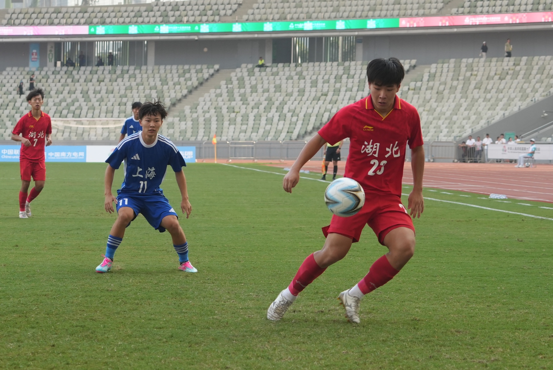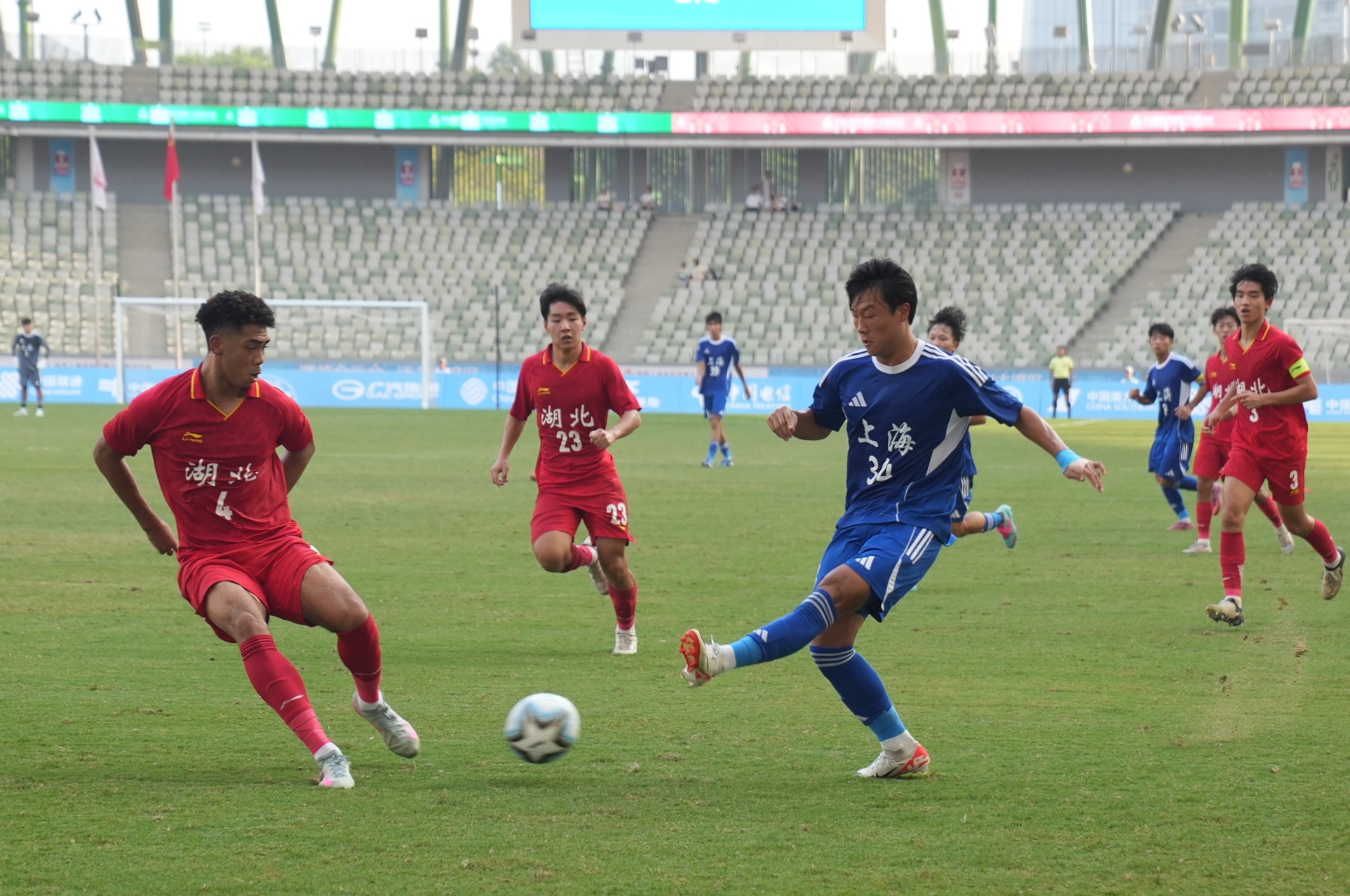 10月18日下午,十五运会U18男足决赛阶段C组上演了一场惊心动魄的生死战。在宝安体育场,长达60多分钟、少一人作战的湖北队,以顽强的意志上演惊天逆转,2比1力克本组头号种子上海队,将出线主动权牢牢掌握在自己手中,成功晋级八强。