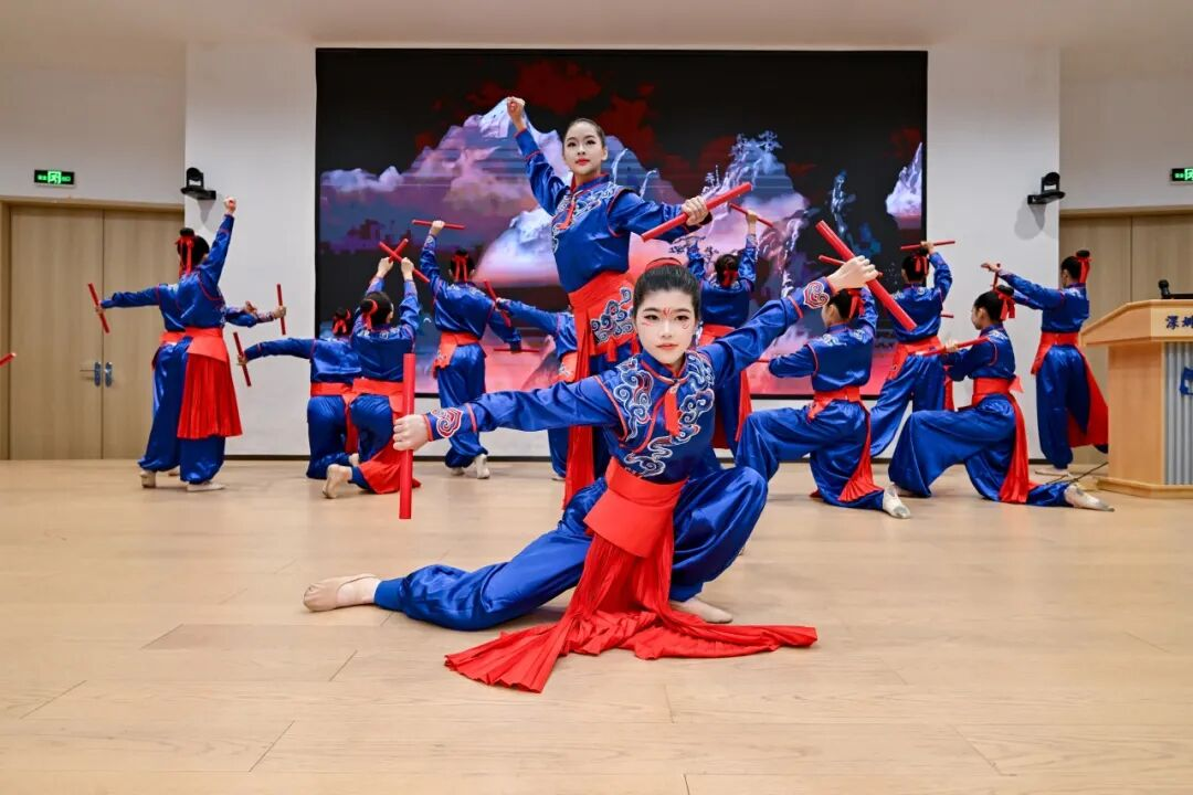 蛇口校区的欢迎仪式同样别出心裁。微格教室中,舞蹈团的同学以一段气势恢宏、节奏鲜明的英歌舞点燃全场。育才学子还邀请美国伙伴上台,一起体验传统舞蹈的独特魅力。有美国学生情不自禁地赞叹:“So good!”随后,育才中学副校长丁龙代表育才中学蛇口校区全体师生向美国朋友致以热烈欢迎。