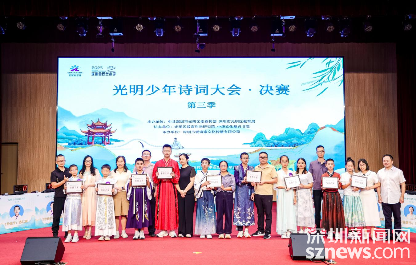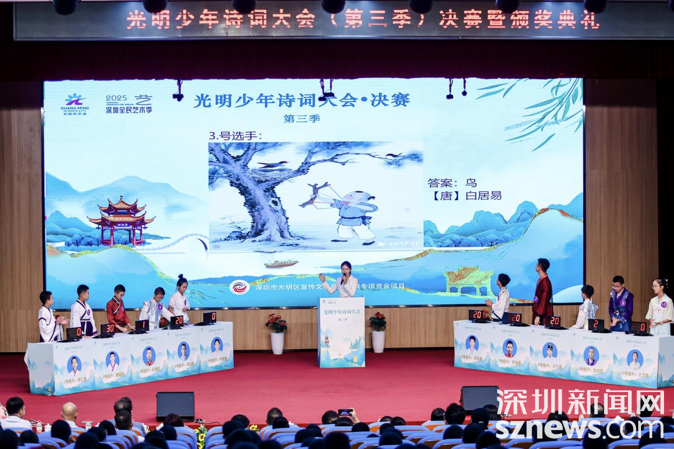 据悉,“光明少年诗词大会(第三季)”由中共深圳市光明区委宣传部、深圳市光明区教育局共同主办。除海选、初赛、复赛、半决赛、决赛暨颁奖典礼等环节外,本季诗词大会还创新融入“古诗今唱音乐会”与“种梦光明”深港青少年童诗创作大赛,旨在以多元形式激发青少年对古诗词的热爱,提升青少年人文素养,厚植青少年文化自信,为光明区打造世界一流科学城注入文化活力,同时推动深港学子以诗会友,共筑湾区人文纽带。