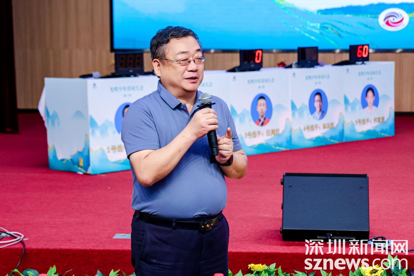 颁奖仪式后,丁时照社长分享连续三季参与的感触。他表示,“光明少年诗词大会”越办越好,渐入佳境。他认为,“光明”不仅是一个地理名称,更包含三重内涵:“光明”代表着一种水平,从庞大参赛基数中诞生的十强选手,体现了光明区诗教水平的整体提升;“光明”也代表着一种精神状态,选手在比赛中展现的心理素质与人文涵养,正是“光明之气”的生动写照;“光明”还代表着一种文化行动,通过持续举办诗词大会,让光明区诗意洋溢。最后,丁社长期待“在现代化的进程中,诗歌的种子遍地开花”。