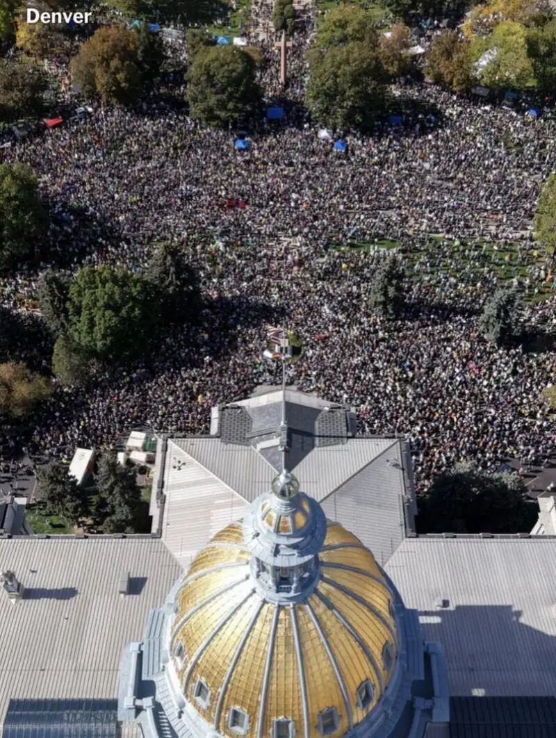 综合新华社、中新社消息,当地时间10月18日,首都华盛顿、纽约、芝加哥等美国多地再次举行“不要国王”(No Kings)抗议活动,表达对现任美国政府立法、移民、医保等方面政策的不满,参与人数达700万。
