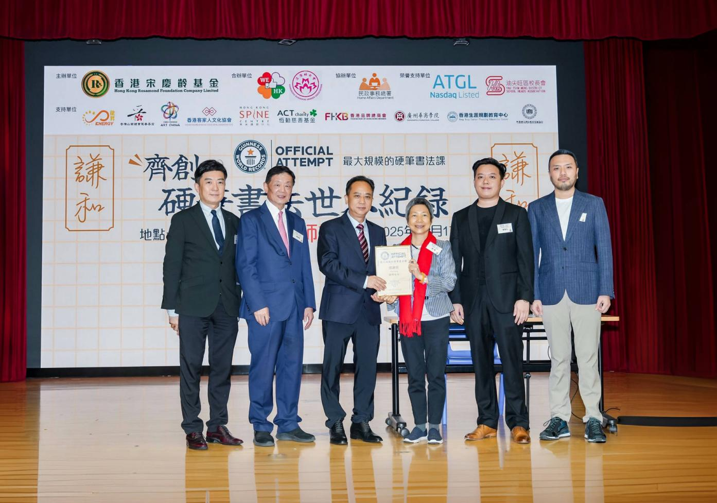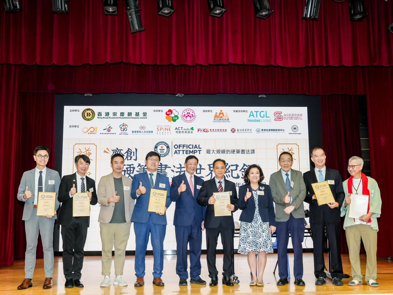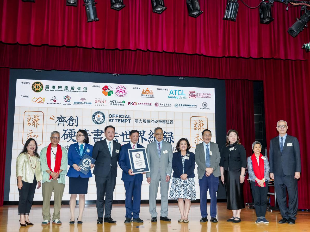 挑戰結束後,在經過嚴格的數據核實與流程審核後,健力士世界紀錄TM認證官正式宣佈本次活動成功創造新世界紀錄。隨後,香港宋慶齡基金創會會長胡曉明教授及副會長孫偉勇先生、We like Hong Kong董事馮家彬先生及丁午壽先生、滬港婦女會主席胡梁子慧女士及創會會長榮吳佩儀女士共同從認證官手中接過世界紀錄證書。這份沉甸甸的證書,不僅是對本次活動的肯定,更是香港青少年傳承中華文化的有力見證。