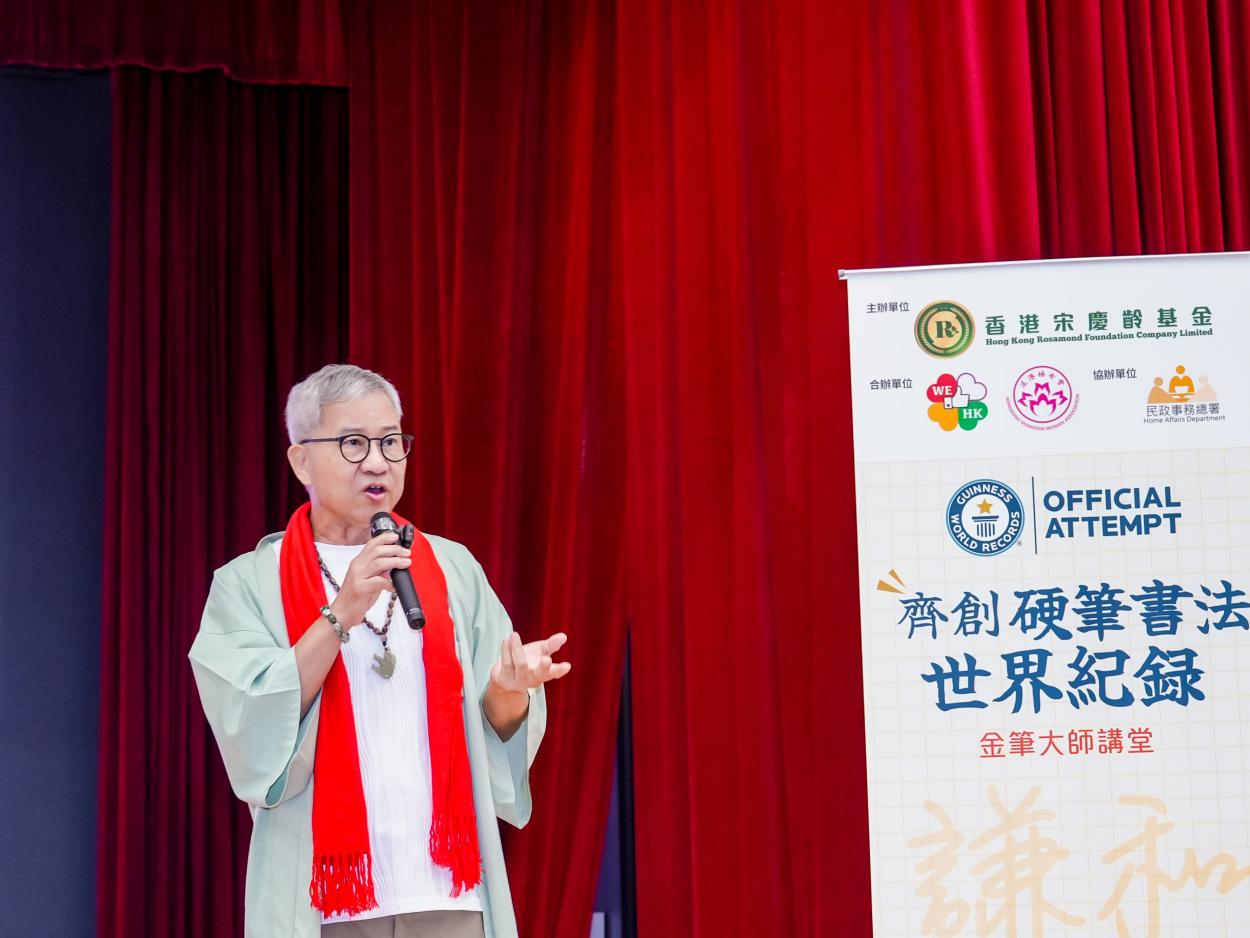 當日下午2時,伴隨著現場師生的期待,活動正式拉開帷幕。香港特別行政區政府油尖旺民政事務專員余健強先生致詞,他高度肯定本次活動對弘揚中華文化、推廣書法藝術的重要意義,強調書法不僅是文字的藝術,更是文化傳承的載體,鼓勵學生們珍惜機會,在筆墨間感受傳統文化的魅力。隨後,香港宋慶齡基金創會會長、港區全國人大代表胡曉明教授表示這次透過創新世界紀錄,香港青少年有機會為香港發放更多正能量,並在國際社會推廣中華文化,讓世界認識及了解中國。他並表達對進一步弘揚中華文化、促進青少年全面發展的殷切期望。