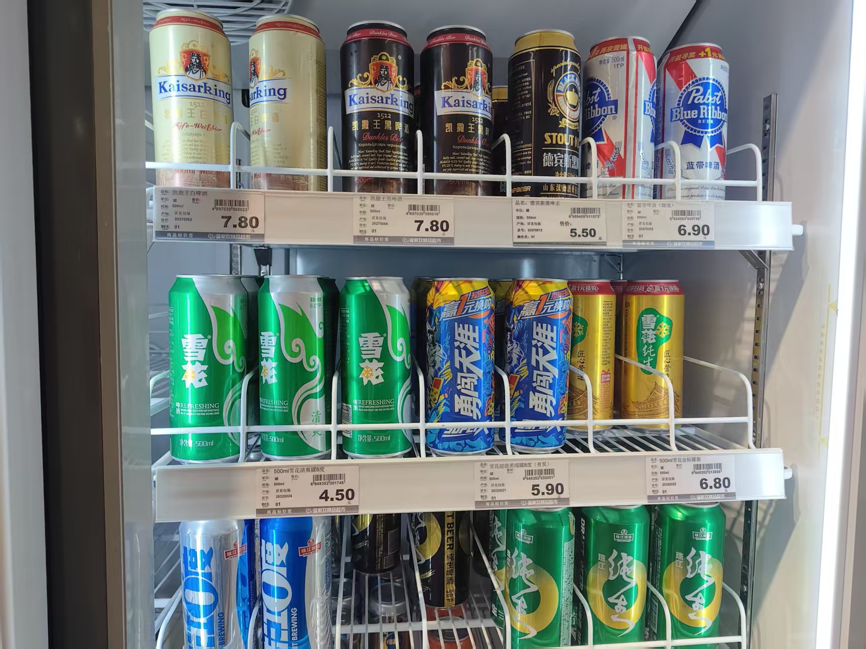 深圳某超市货架上的雪花啤酒。周良成/摄