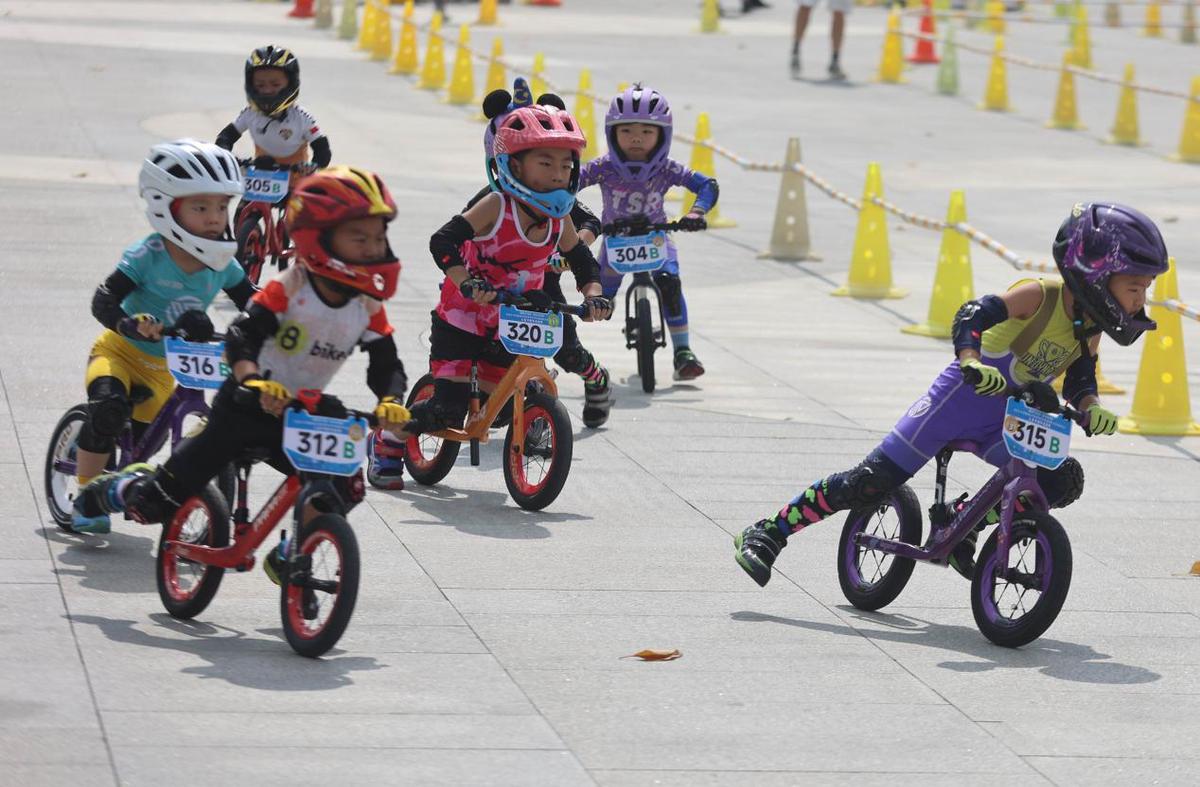 儿童平衡车赛场地设在滨海湾文体公园,周边绿植环绕,为亲子家庭营造了轻松安全的竞赛环境。随着发令声响,小选手们佩戴齐全护具,紧握车把,奋力向前。小龄组选手眼神坚定,摔倒后迅速爬起的模样令人动容;大龄组则展现出更强竞技性,灵活过弯与超车场景频频上演。场边家长的加油声与孩子们的笑声交织,与滨海湾的景致相映成趣。