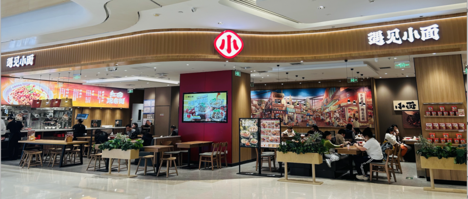 位于北京东五环外的长楹天街,聚集着上百个餐饮业态,遇见小面入驻在商场的B1层。它的对面就是味千拉面,周围还有老乡鸡、小满手工粉、阿上阿上麻辣香锅等快餐品牌。