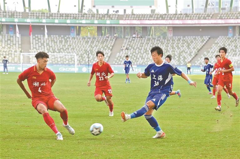 10月18日下午,十五运会U18男足决赛阶段C组上演了一场惊心动魄的生死战。在宝安体育场,长达60多分钟、少一人作战的湖北队,以顽强的意志上演惊天逆转,2比1力克本组头号种子上海队,将出线主动权牢牢掌握在自己手中,成功晋级八强。