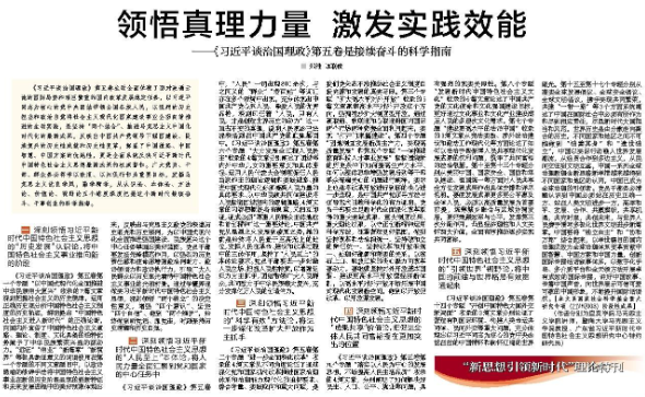 《习近平谈治国理政》第五卷生动全面体现了面对波谲云诡的国际局势和艰巨繁重的国内改革发展稳定任务,以习近平同志为核心的党中央团结带领全国各族人民,以强烈的历史担当和政治自觉将社会主义现代化国家建设事业全面向前推进的生动实践,是坚持“两个结合”、推进马克思主义中国化时代化的最新成果,反映出中国共产党领导下强国建设、民族复兴的历史性成就和历史性变革,彰显了中国道路、中国智慧、中国方案的优越性,更是全面系统反映习近平新时代中国特色社会主义思想最新成果的权威著作。广大党员、干部、群众务必将学以致用、以知促行作为重要目标,发扬马克思主义优良学风,勤学精学,从认识论、本体论、方法论、价值论、视野论五个维度深度把握这个新时代接续奋斗、干事创业的科学指南。