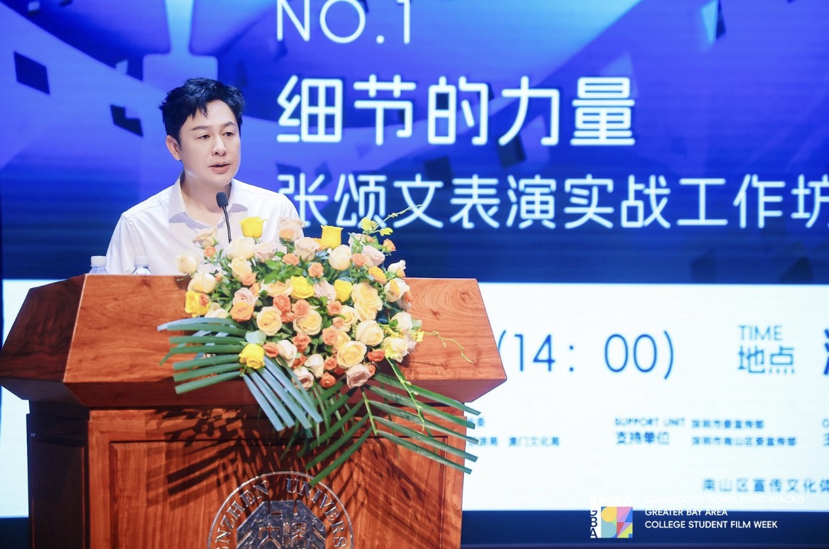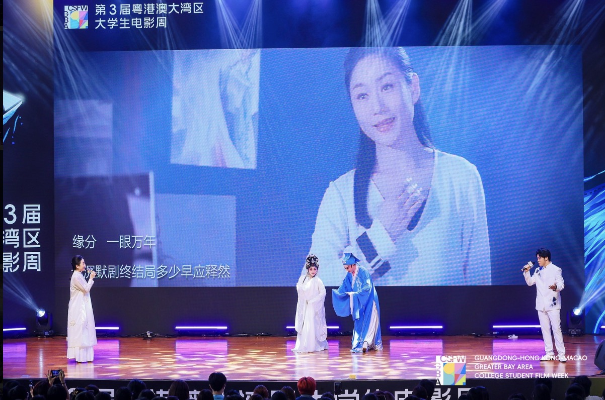 當天下午,著名演員、電影周藝術顧問張頌文為青年電影人送上真摯寄語,鼓勵大家勇敢追夢,用鏡頭記錄時代,用光影傳遞青春力量。著名粵劇演員曾小敏與暨南大學澳門籍學生李洋樂一同演唱粵劇電影《白蛇傳·情》推廣曲《待你歸來》,廣東粵劇院一級演員楊靜、玉龍傾情伴舞。傳統戲曲與現代影視跨界融合,展現“一曲千般情,萬象入戲來”的藝術魅力。