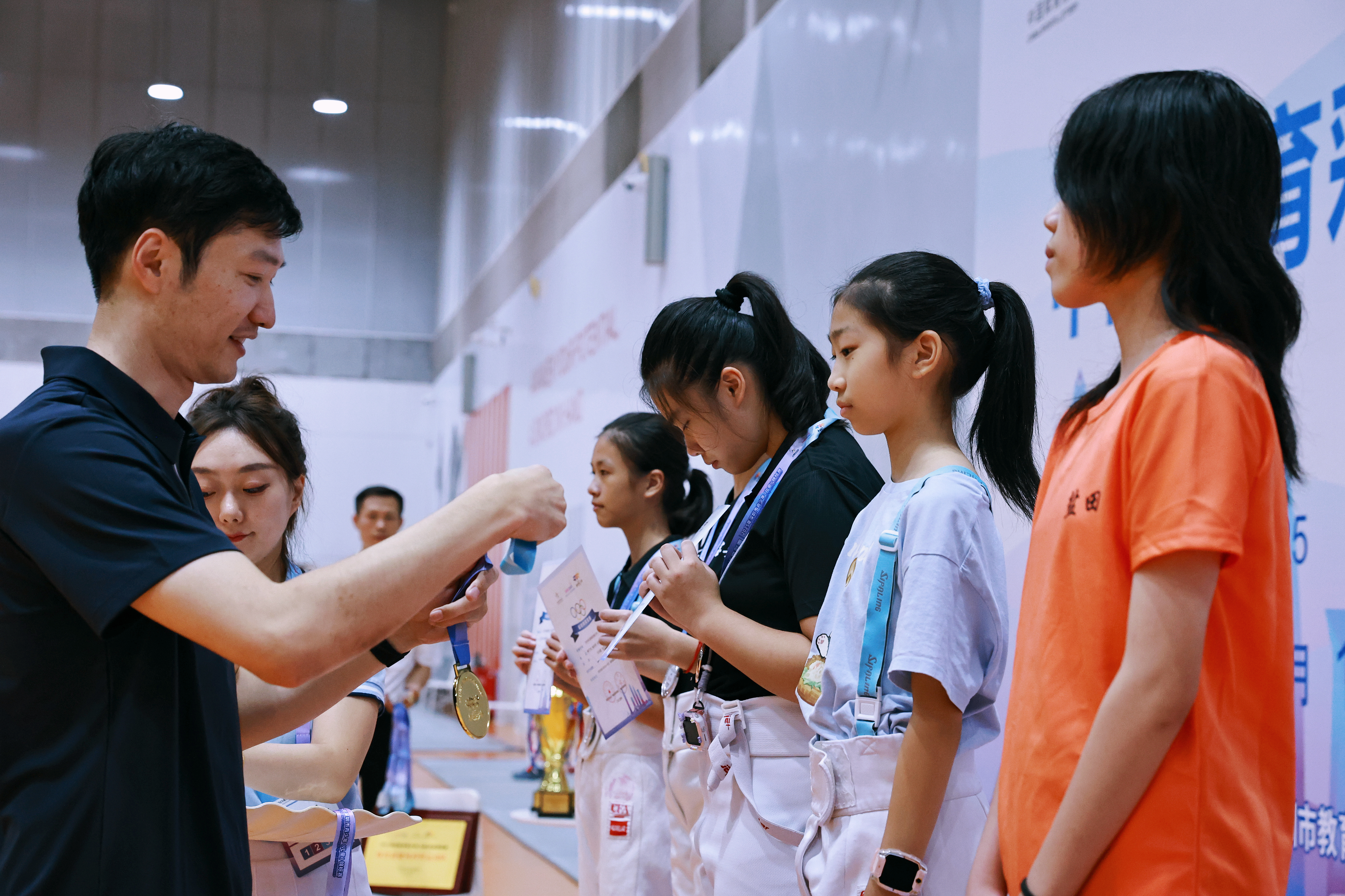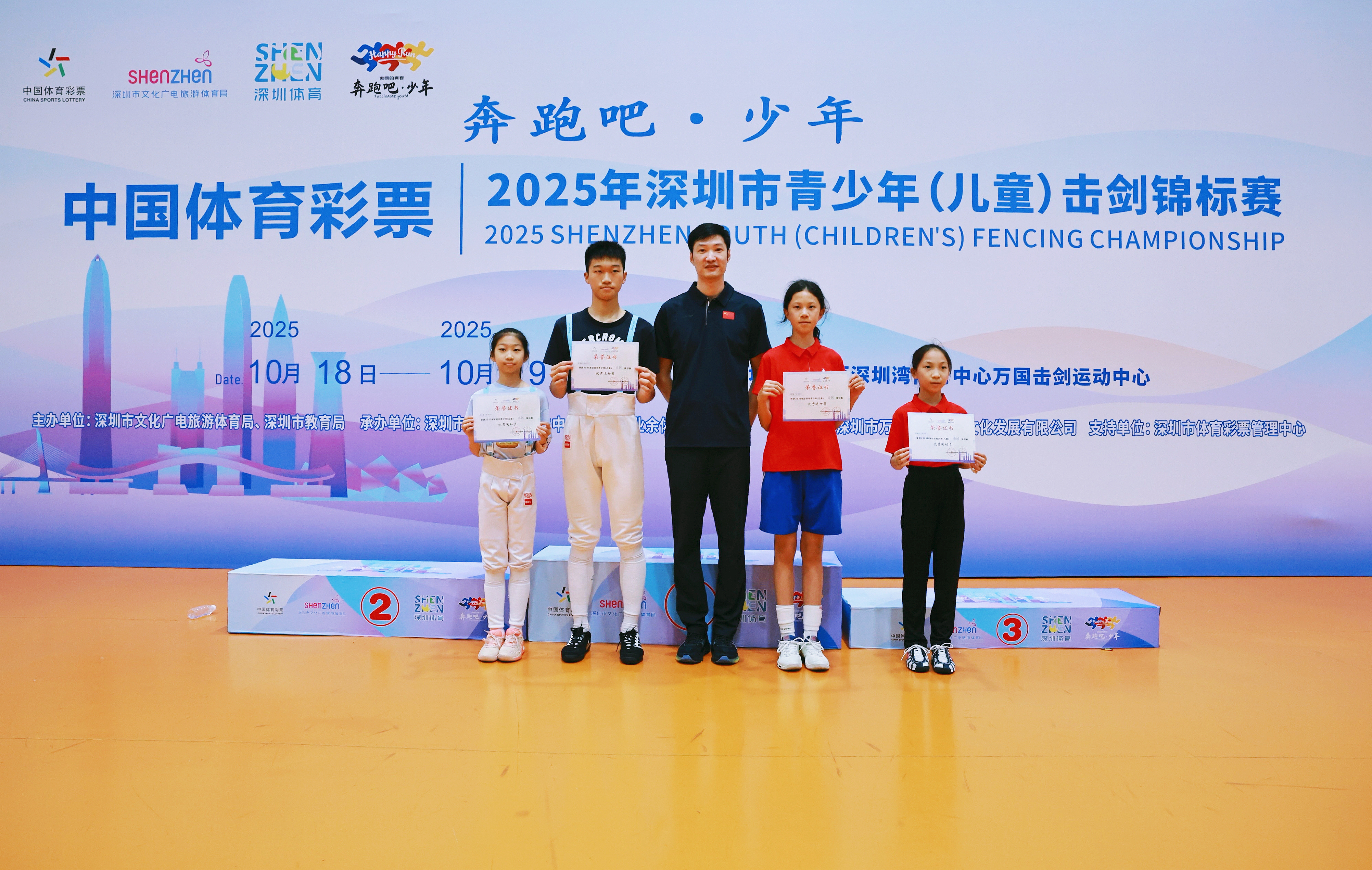 场馆内,刚刚结束比赛的选手们互相击掌致意,诠释“场上是对手,场下是朋友”的体育精神。颁奖典礼上,少年剑客们手持奖牌与证书,脸上洋溢着自豪的笑容。雷声、深圳市业余体育运动学校校长高广瑞等嘉宾为获奖运动员颁奖。