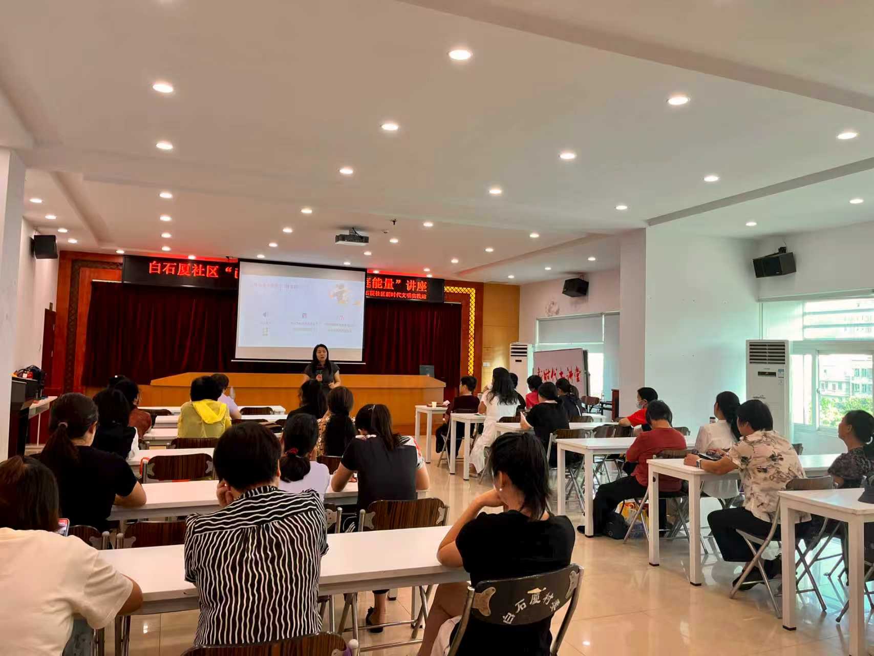 近日,福永街道白石厦社区党群服务中心开展了有关已婚女性自我滋养与家庭能量提升的主题讲座,旨在提升已婚女性自我认知、助力自我滋养,同时增强家庭正能量,营造和谐家庭氛围。讲座吸引了30余名社区女性积极参与。