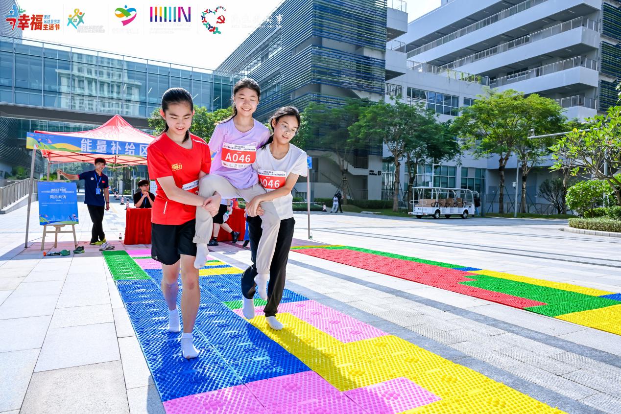 亲子组的赛道则更显温馨与趣味。孩子们在家长的陪伴下,大手拉小手,共同体验了一段名为“最美赛道”的欢乐旅程。路线从深圳大学城管理办大楼广场出发,途经清华桥、春华路、秋实路、北大桥,最终返回起点。为提高参赛体验,组委会在沿途精心设置了融合智力、体力与协作精神的通关任务和趣味游戏,让家庭成员在并肩前行中收获快乐,增进情感。