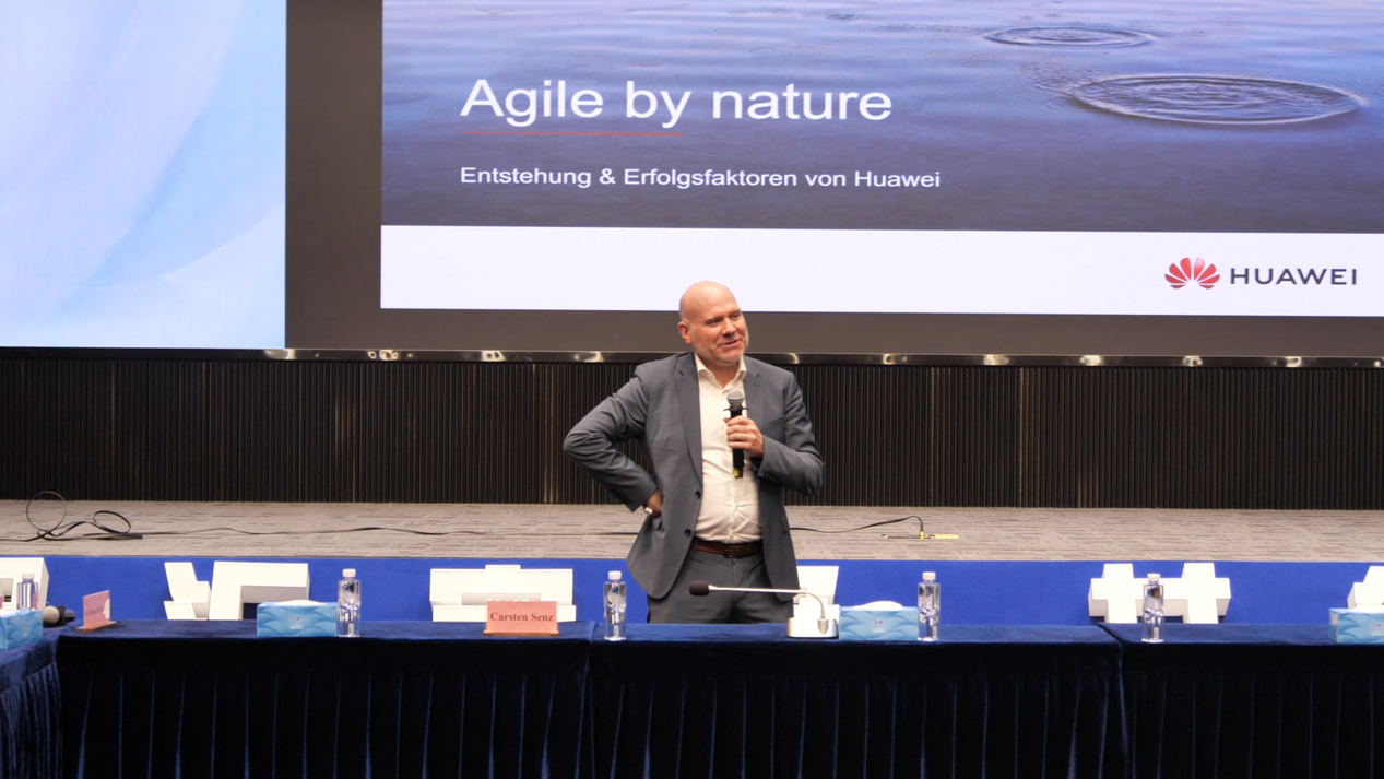华为德国企业沟通副总裁Carsten Senz发言。