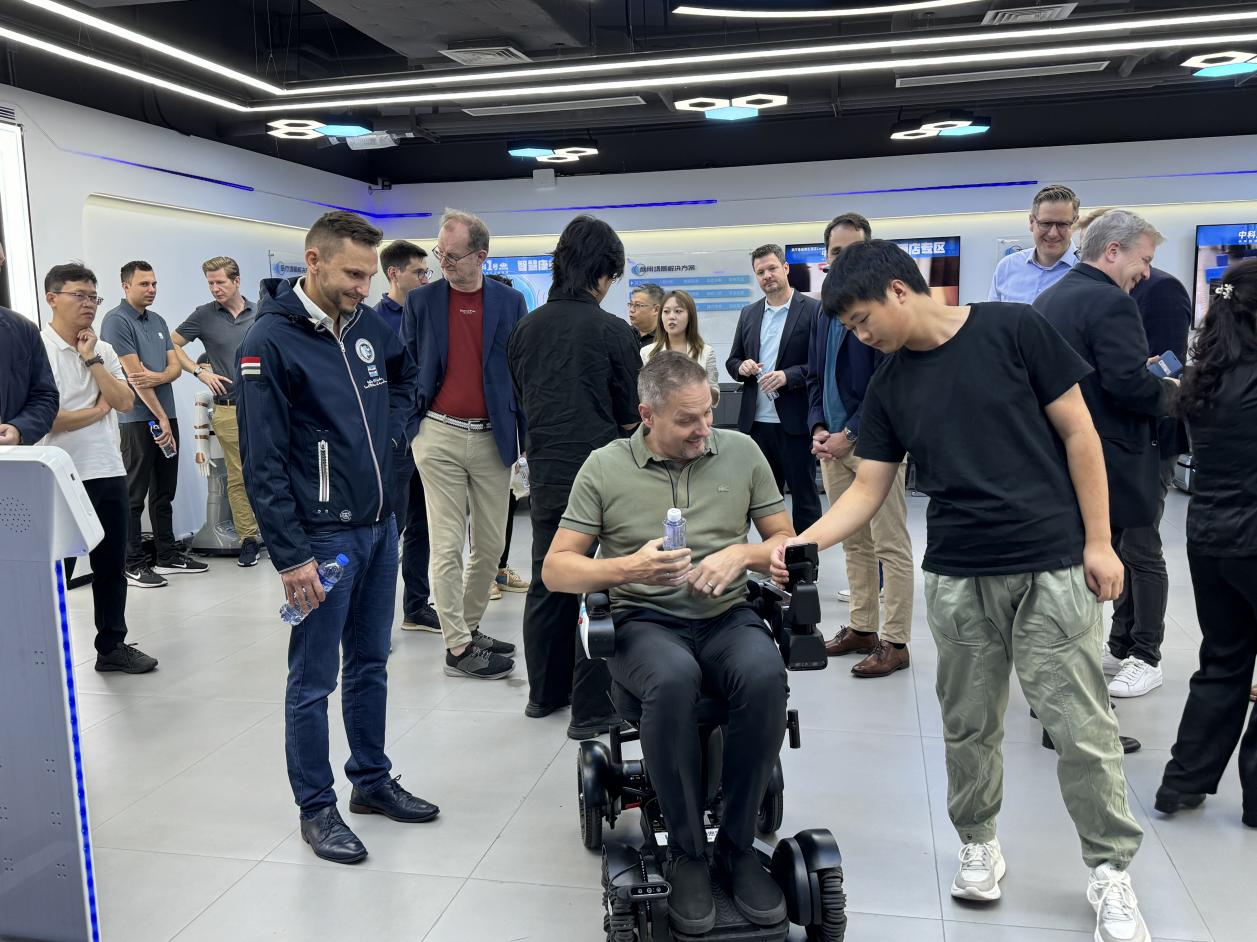 另一款智能轮椅,则彰显了汇智企业在精密制造与智慧康养领域的硬核实力。它搭载了精度高达0.1毫米的安全模块系统,能识别头发丝级别的障碍物并提前规避,实现了从工业场景到家庭应用的完美跨越。现场,多位代表团成员亲自体验,对其平稳性、易操作性和精准的路况判断给予一致好评。“这些产品将极大造福老年生活,在全球市场潜力巨大,中国企业太棒了!”一位成员由衷感慨。