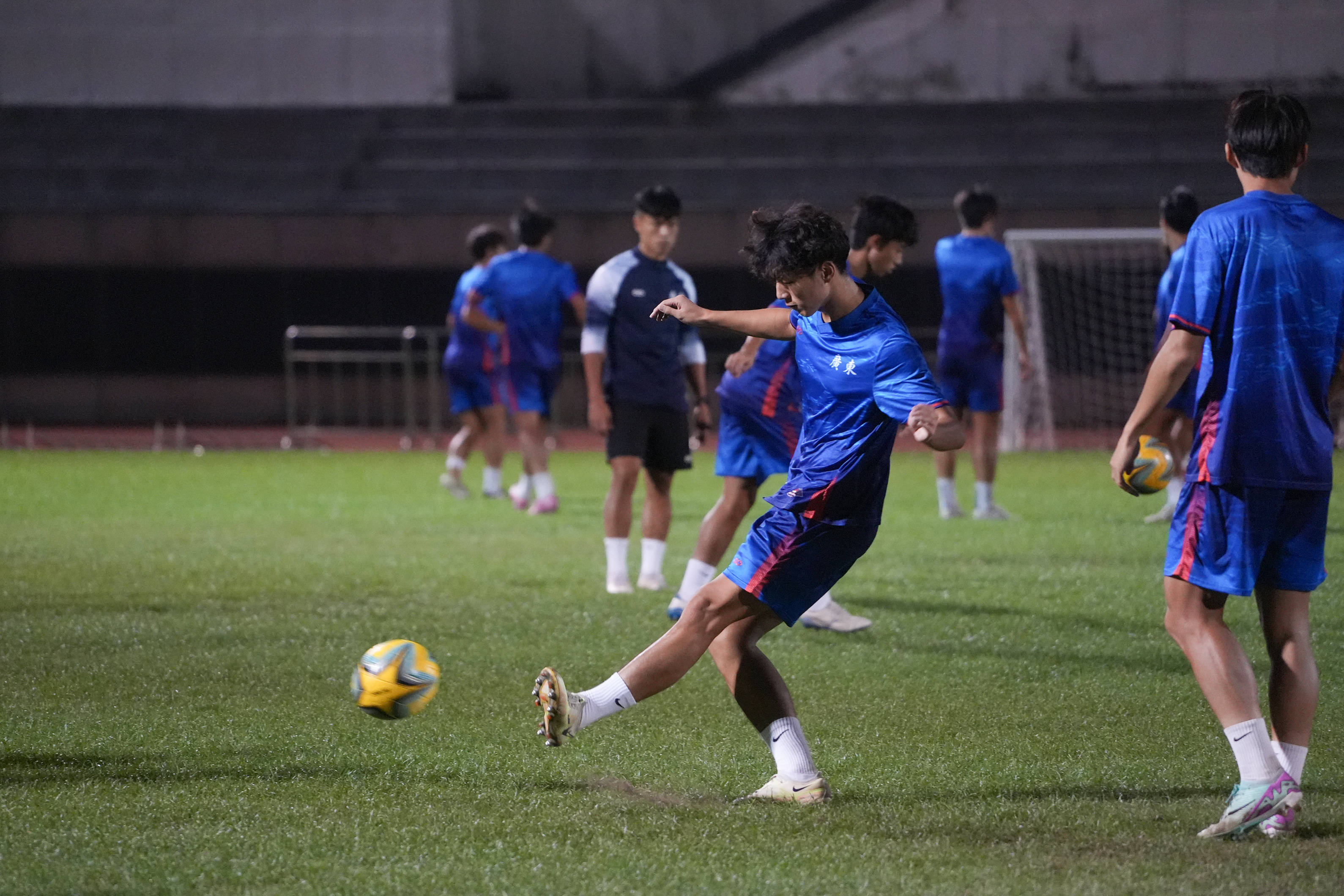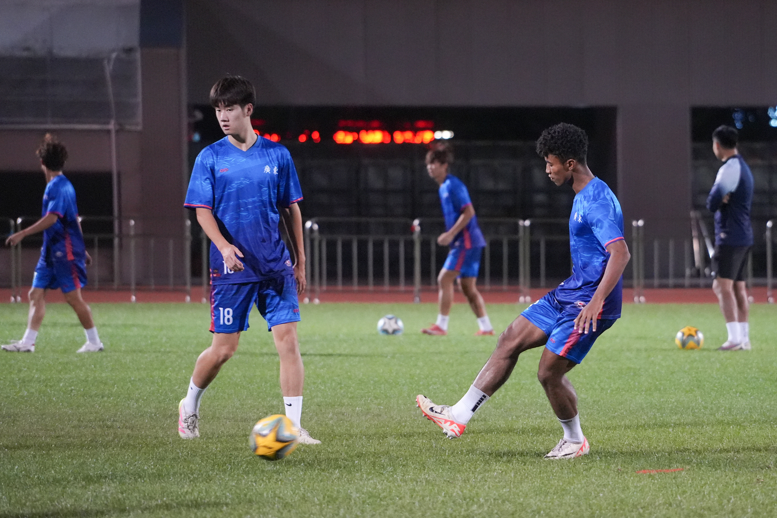 10月20日晚,宝安体育场副场灯光明亮,十五运会U18男足四强赛前夕,广东队与湖北队先后在此展开适应性训练。两支小组赛表现出色的劲旅,将于21日晚上演强强对决,争夺四强席位。