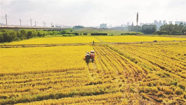 记者从欢乐田园获悉,本次收割的水稻面积约300亩。自7月以来,这片稻田历经青青禾苗到金色稻浪的蜕变,吸引了大批市民前来打卡观光,成为深圳都市生态版图中一道独特的风景线。欢乐田园还特意预留部分稻田,作为少儿自然劳动教育的“大地课堂”,园区“欢乐小农夫”研学系列课程“稻谷丰收营”于10月18日开启2025年首期活动,将持续开展至11月中旬。孩子们在农事导师带领下,学习水稻的一生科普课堂,并亲手体验水稻收割、打谷、脱粒等传统收稻工序。通过亲身体验农事,孩子们不仅能够了解水稻从田间到餐桌的全过程,还能直观感受农业劳作的艰辛与意义,从而懂得珍惜粮食、尊重劳动。