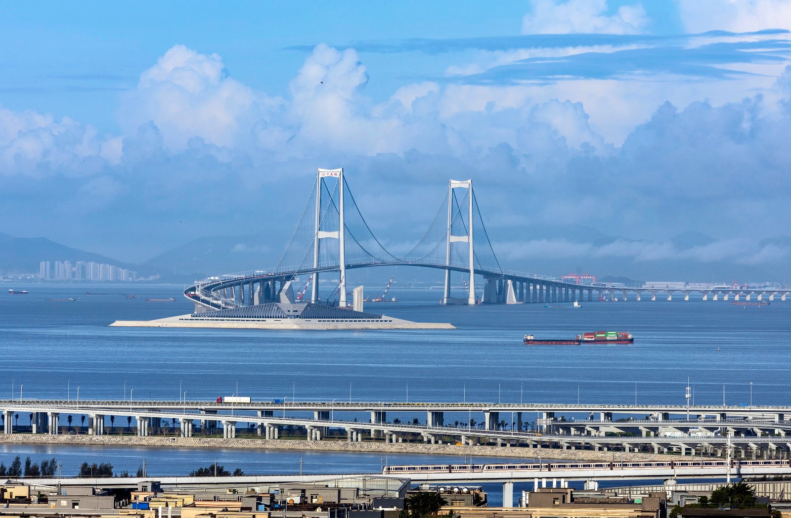 深中通道,是全球首個集“橋、島、隧、水下互通”為一體的跨海集群工程,珠江口東西兩岸進入“半小時生活圈”,日均通行車輛超8.64萬輛。