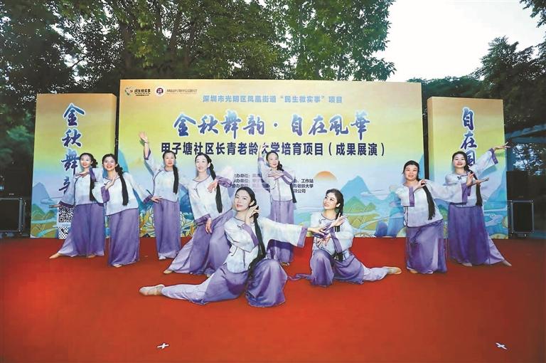 10月18日下午,甲子塘社区公园歌舞飞扬,掌声雷动,社区长青老龄大学2024-2025学年结业典礼暨“金秋舞韵·自在风华”汇报演出在此上演。