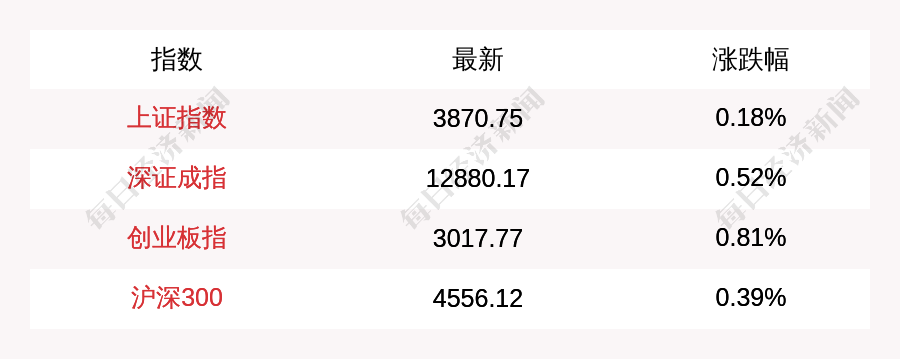 10月21日,A股三大股指集体高开。上证指数开盘上涨6.86点,涨幅为0.18%,报3870.75点;深证成指开盘上涨66.96点,涨幅为0.52%,报12880.17点;创业板指开盘上涨24.32点,涨幅为0.81%,报3017.77点;沪深300开盘上涨17.9点,涨幅为0.39%,报4556.12点。