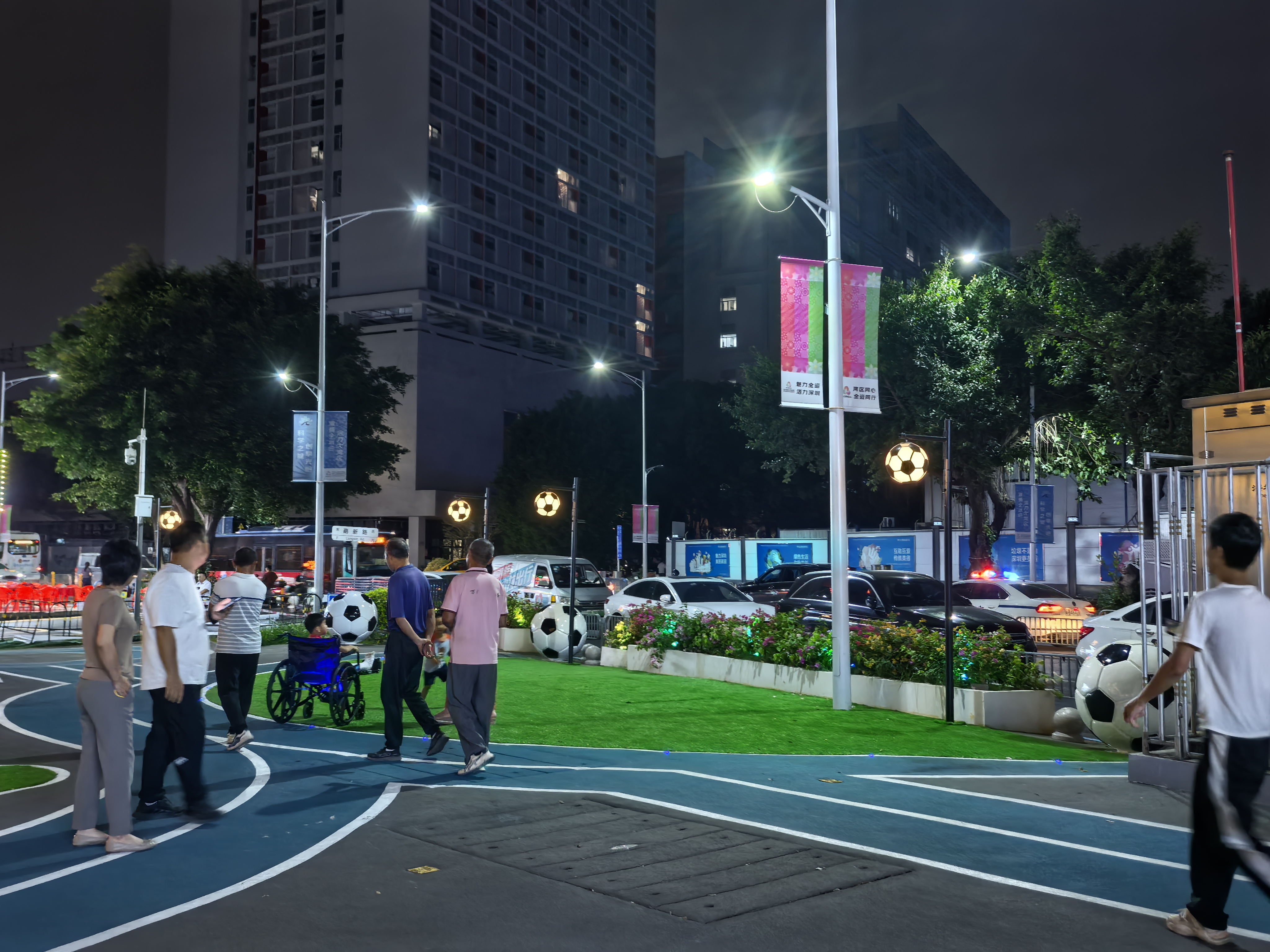 此前,社区居民尤其是附近住户因缺乏就近运动场所,要到很远的场所去健身。如今,小型活动场地与颗粒橡胶地面构成的安全空间,成了孩子们嬉戏的乐园。户外长椅与绿植环绕的休憩区,让老年居民多了晨练闲聊的去处。清晨,老人沿步道散步晨练,呼吸草木清香;午后,孩童在草坪上追逐嬉闹,欢呼声此起彼伏;傍晚,亲子家庭围坐长椅闲聊,足球造型路灯亮起暖光,勾勒出温馨邻里图景。