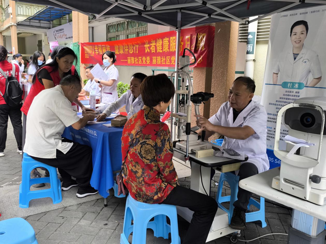 为了提高居民健康水平,增强居民健康保护意识,普及眼睛健康知识,让辖区长者在家门口就能享受到专业优质的医疗健康服务。2025年10月21日下午,南山区丽雅社区党群服务中心联合新围社区健康服务中心和华厦眼科医院,为辖区长者开展了社区长者健康日第二期服务活动,为社区长者提供免费提供健康义诊、健康咨询等服务。