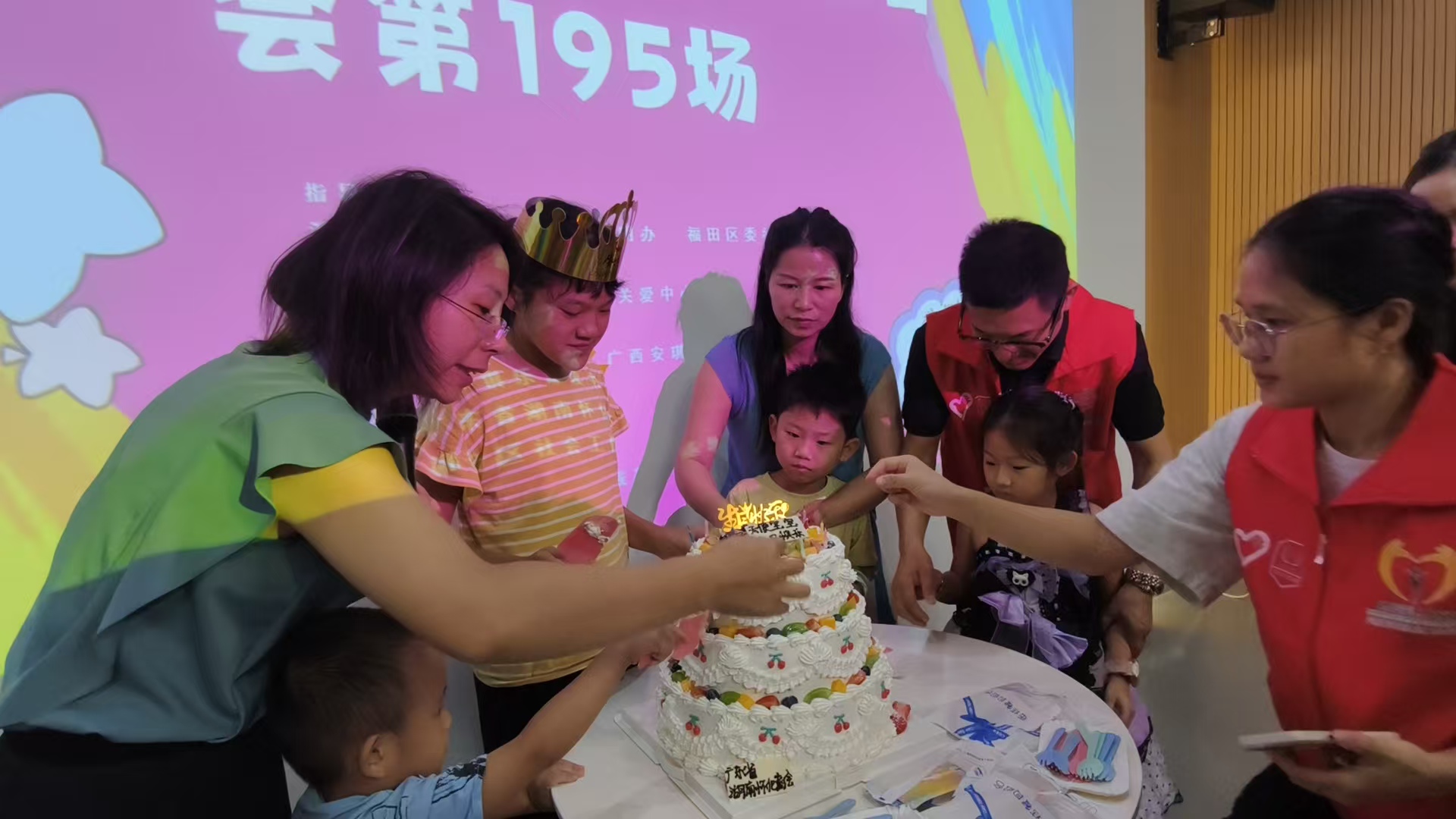 伴隨着《祝你生日快樂》旋律歡快奏響,志願者們推着點滿蠟燭的蛋糕緩緩入場,天使寶寶親子樂享生日會第195場拉開序幕。志願者們陪伴天使寶寶們一起迎着燭光祈福祝願國泰民安,祝福天使寶寶們早日康復上學圓夢。孩子們大快朵頤地享用美味的生日蛋糕也收穫了故事機、旺旺雪餅、運動T恤、毛毯等裝滿豐富禮品的愛心大禮包。