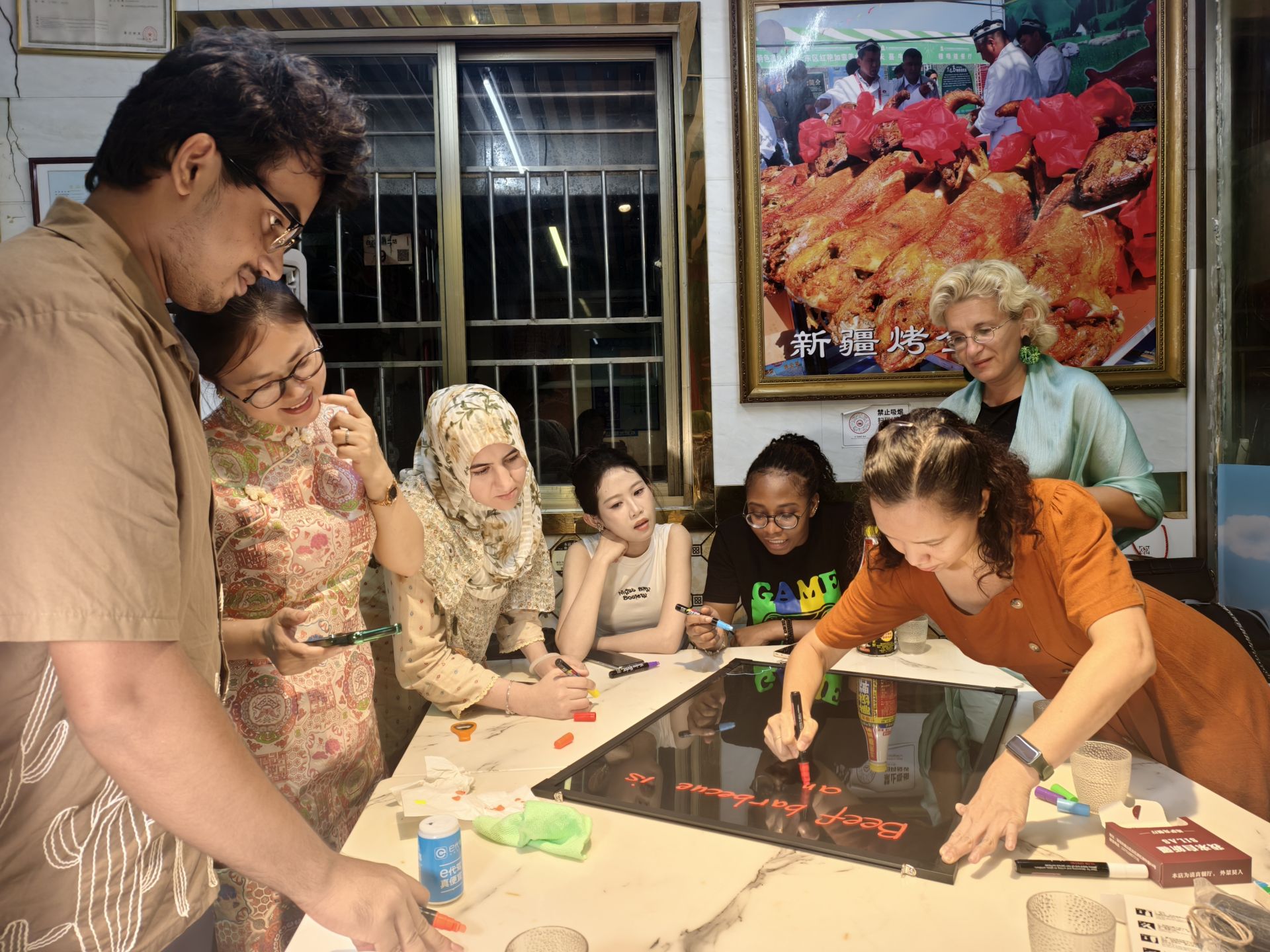 此次深度体验是沙河街道“国际志愿推介官”系列活动的组成部分。在本场活动中,Michelle与多位国际友人共同走访沿街商户,就双语标识优化与国际化氛围营造进行交流,并亲手制作多语广告立牌助力商铺推广。