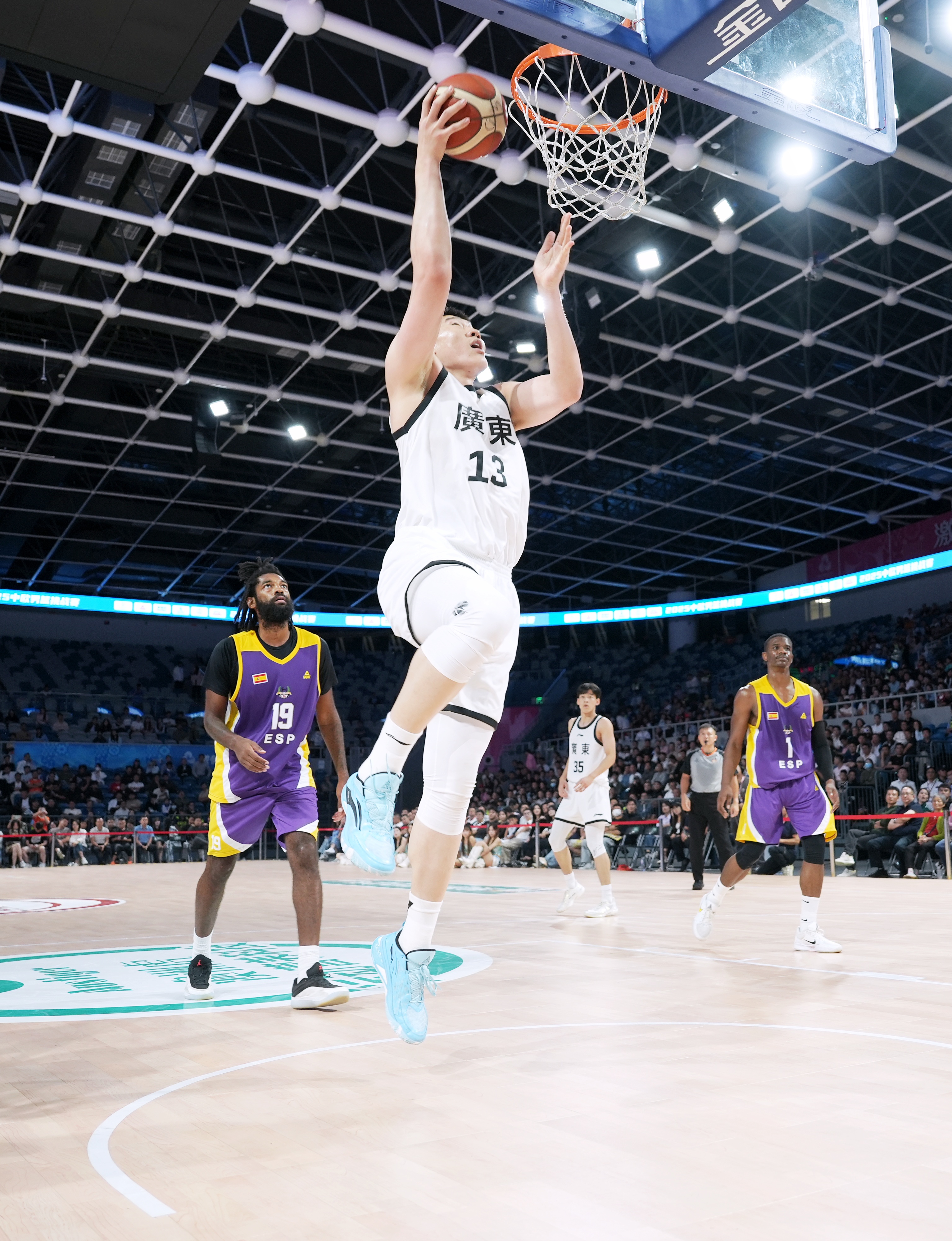 中场休息后,西班牙队防守加强,并连续追分。广东队严防死守,锐气十足,张文逸、刘传兴、徐杰多次把握机会投篮得分,至三节赛事结束,广东队将比分定格在87:41。
