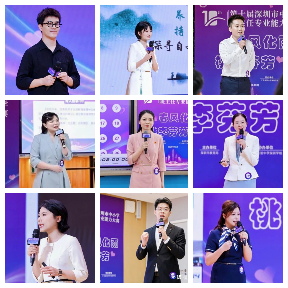 在近日闭幕的深圳市第十届班主任专业能力大赛中,龙华区选派的9位教师凭借扎实的专业素养、深厚的育人智慧与出色的临场表现斩获多项荣誉,不仅实现小学、初中、高中三个组别一等奖全覆盖,更充分展现了龙华区班主任队伍的过硬实力与新时代教育工作者的风采。