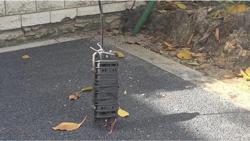 第六,在田洋六路南侧第二处交叉口,电线和网络从空间横杆上脱落下来,直接挂在树上和落在地上。市民直呼,安全隐患就在眼前和脚下,很不安全。