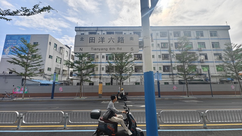 根据现场走访,田洋六路位于松岗街道核心区域,与东方大道相交,全长约0.63千米,虽不算长,却是辖区重要交通纽带。